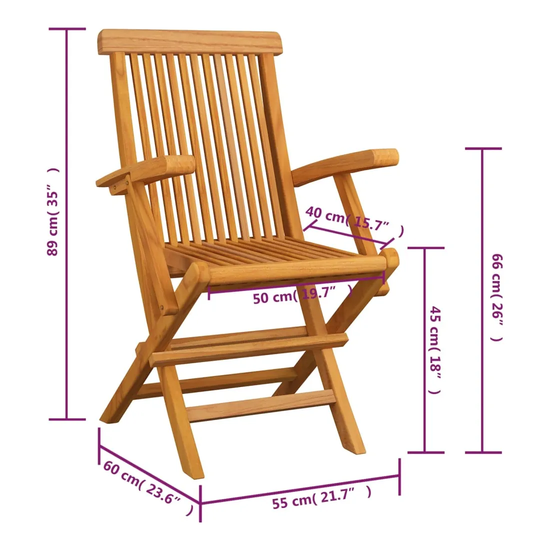 Cet ensemble de chaises de jardin en bois se compose de 4 pièces et est destiné à être un excellent supplément à votre jardin, terrasse ou patio. Vous pouvez vous détendre et discuter avec la famille et les amis ou profiter du bon temps. Fabriquée en bois dur de teck extrêmement durable, cette pièce de meuble en teck a été chevronnée, séchée au four puis finement poncée pour lui donner un aspect très lisse. Le bois de teck est connu pour sa résistance exceptionnelle aux intempéries, ce qui le rend bien plus adapté aux meubles de jardin que tout autre type de bois. Le bois de teck est le choix idéal si vous souhaitez acheter une pièce de meubles de jardin durable. La surface poncée est facile à nettoyer avec un chiffon humide. Ces chaises d'extérieur sont également légères, ce qui les rend complètement flexibles et faciles à déplacer. Les chaises en bois peuvent être pliées pour gagner de la place lorsqu'elles ne sont pas utilisées. De plus, les coussins de siège inclus offrent également un confort d'assise supplémentaire.