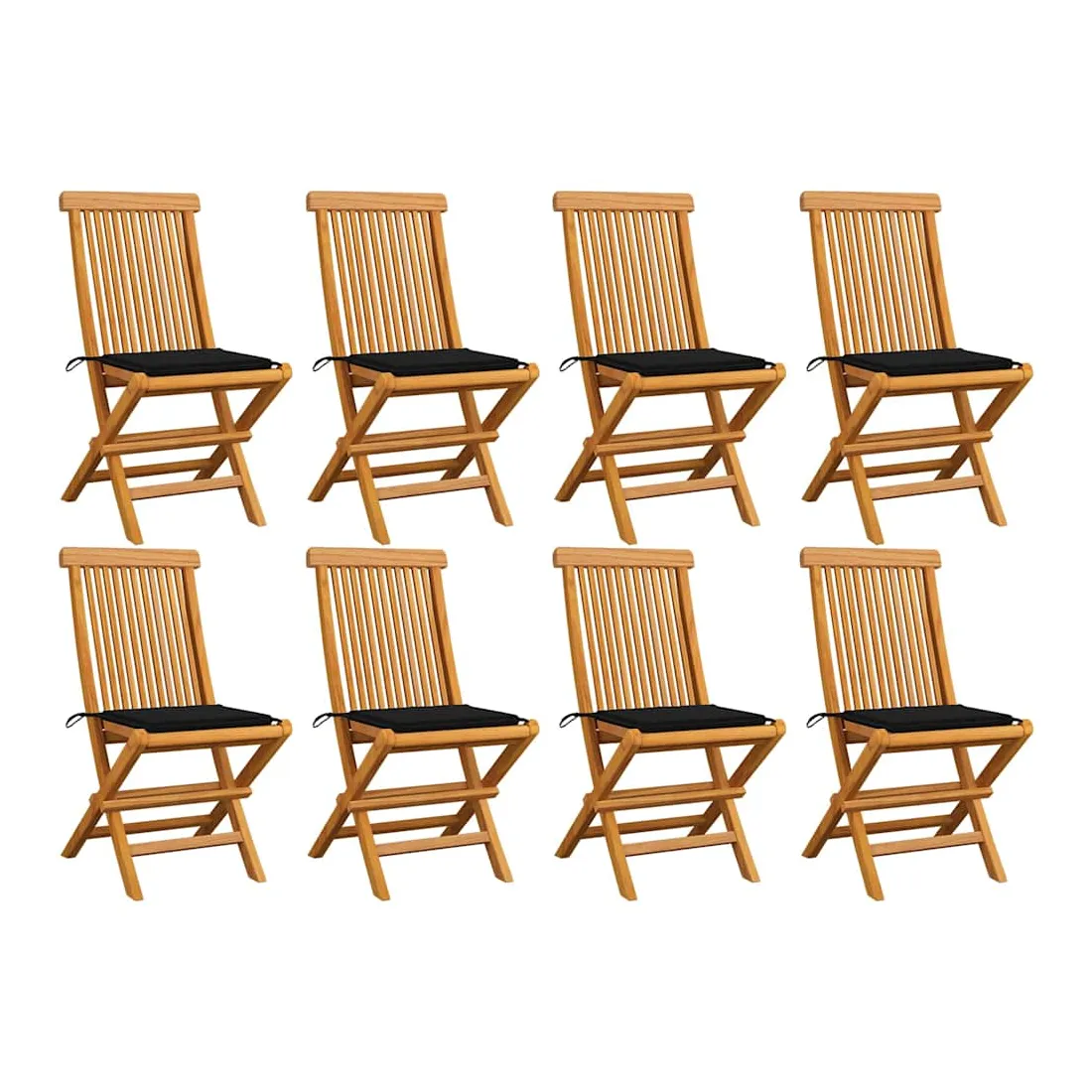 Chaises de jardin et coussins noir lot de 8 Bois de teck massif