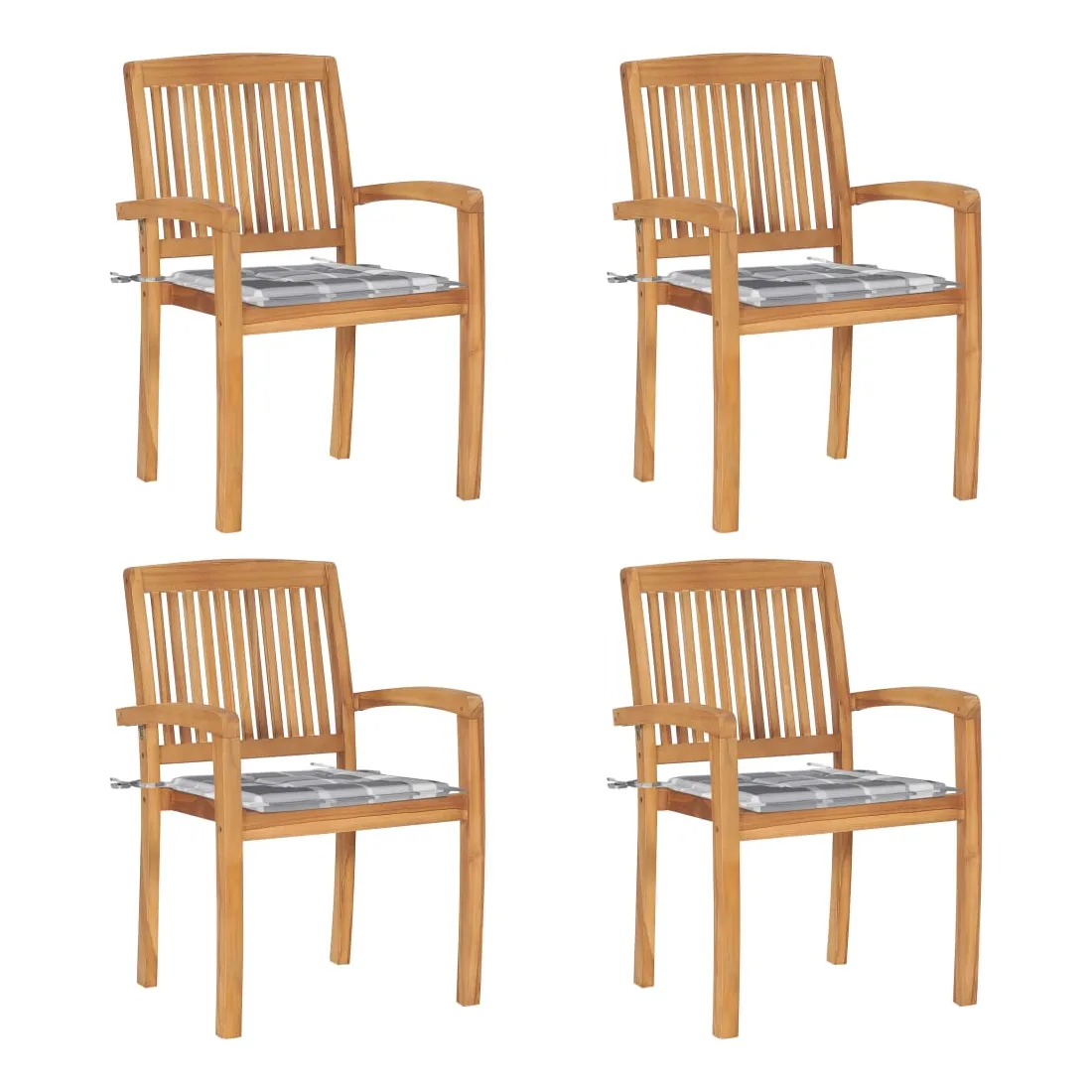 Chaises de jardin empilables avec coussins lot de 4 Teck solide