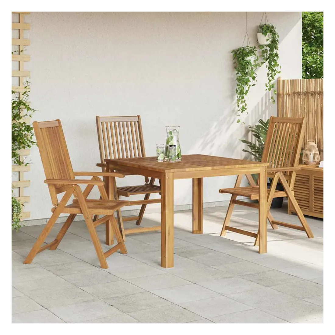 Cet ensemble de 3 chaises de jardin en bois est conçu pour ajouter un look vintage à n’importe quel dîner dans votre jardin, sur la terrasse ou le patio. La chaise pliable est fabriquée en bois d’acacia massif, un bois dur tropical, ce qui la rend stable et durable. La surface à finition à l'huile est facile à nettoyer avec un chiffon humide. La chaise de salle à manger peut être réglée à 5 positions, vous offrant un confort d’assise optimal. Elle peut également être pliée pour économiser de l’espace lorsqu'elle n’est pas utilisée. La livraison comprend le matériel jaune galvanisé.