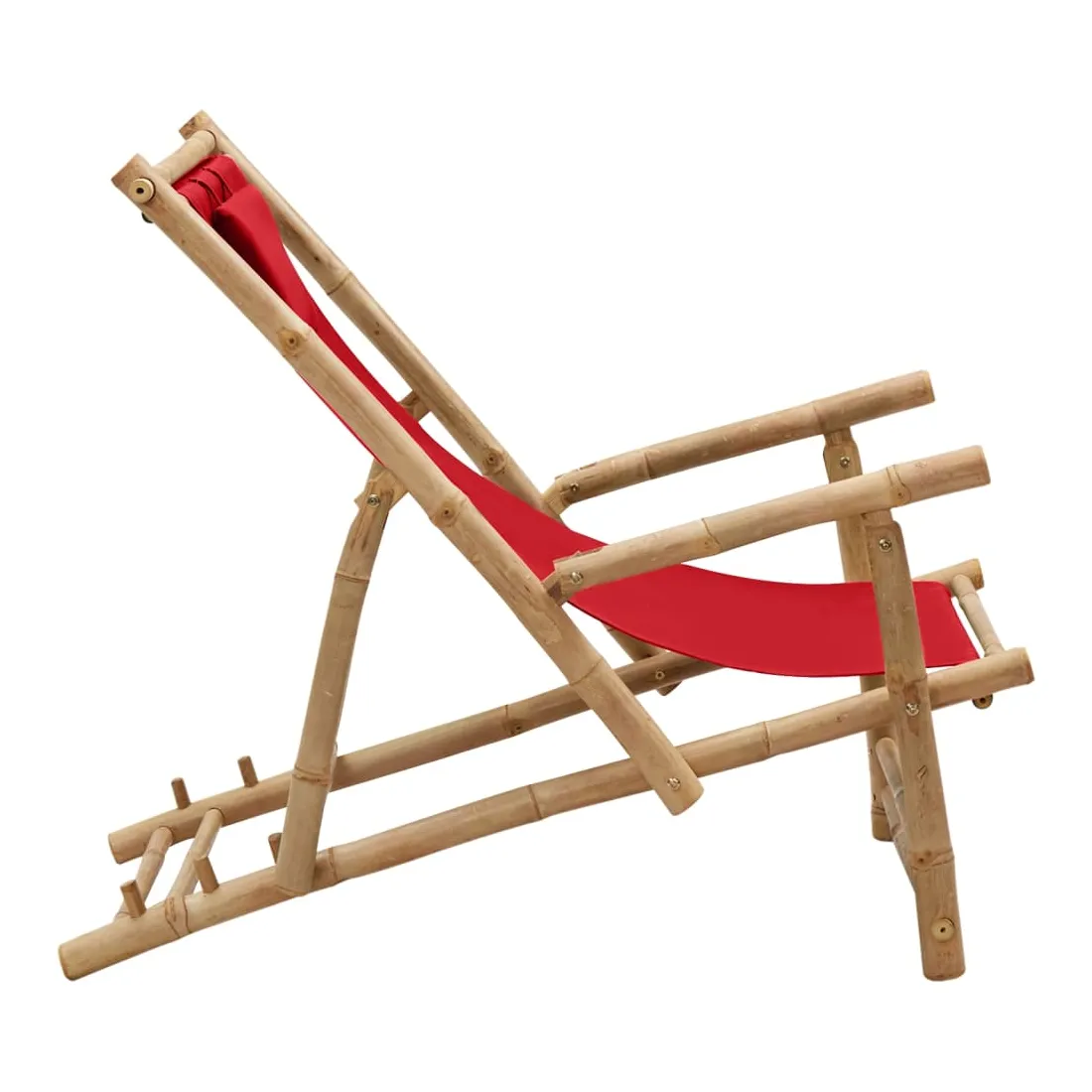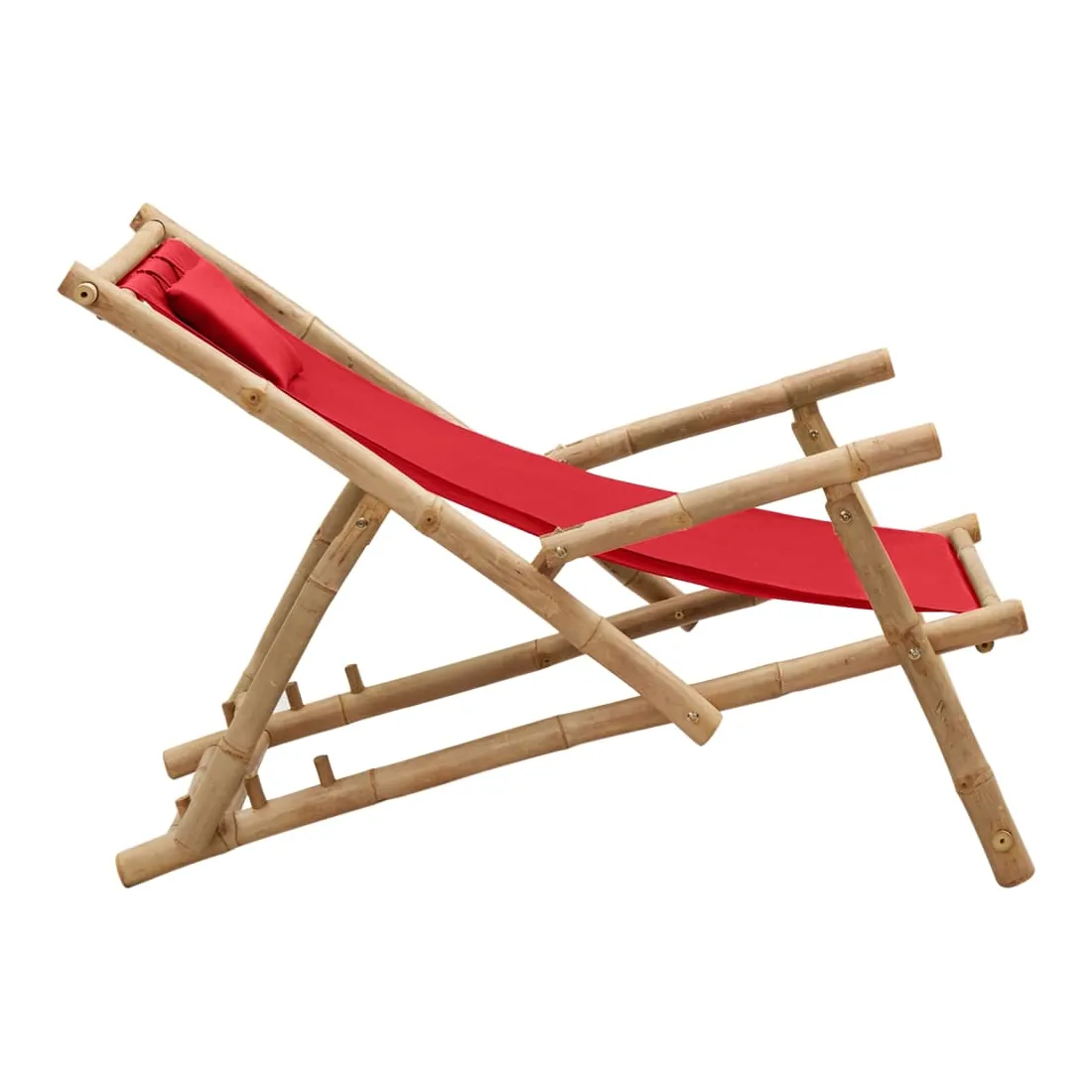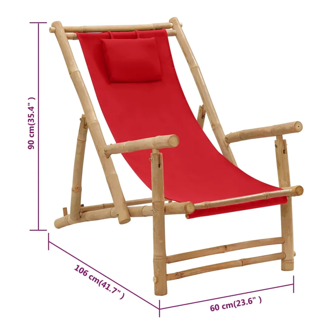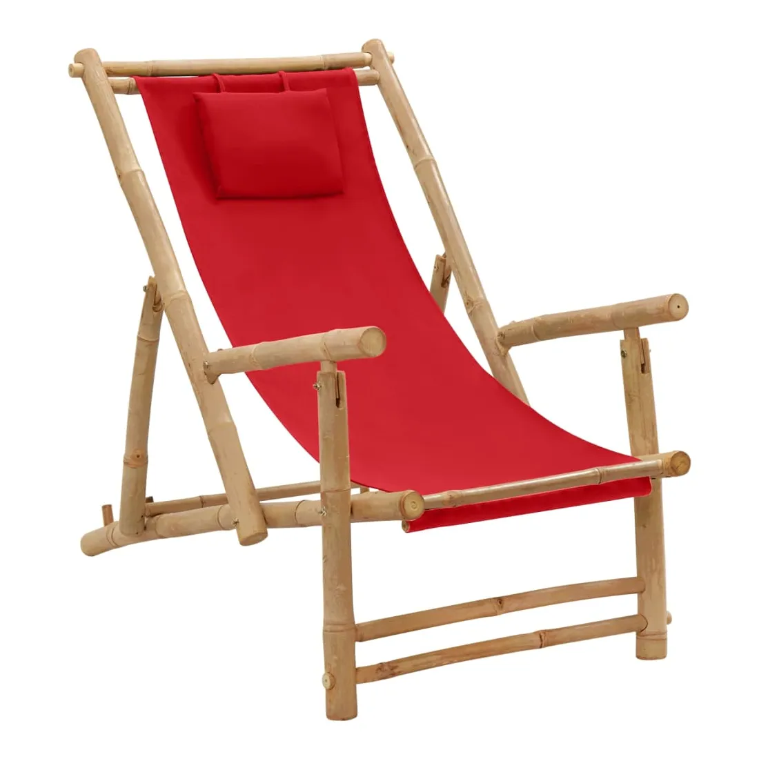 Cette chaise de terrasse en bambou réglable en hauteur avec accoudoirs est conçue pour être un supplément fabuleux à votre jardin, patio ou terrasse. Matériau de première qualité : la toile est un tissu uni largement utilisé, connu pour sa robustesse, sa résistance à l'eau, sa légèreté et son utilisation intensive. De plus, il a un tissage plus serré que la plupart des tissus tissés, ce qui le rend plus rigide et durable.Cadre stable : le cadre de la chaise est fabriqué en bambou , qui est extrêmement durable. Le matériau ne change pas de couleur pendant longtemps et empêche la chaise de plage de se fissurer et de se déformer.Design pliable : la chaise longue peut être pliée pour économiser de l'espace lorsqu'elle n'est pas utilisée.Dossier réglable : grâce au dossier réglable, la chaise de jardin en bambou peut être ajustée en 3 positions. Par conséquent, vous pouvez profiter d'un confort maximal. Remarque :Afin de prolonger la durée de vie de votre mobilier d'extérieur, nous vous recommandons de le protéger avec une housse imperméable.