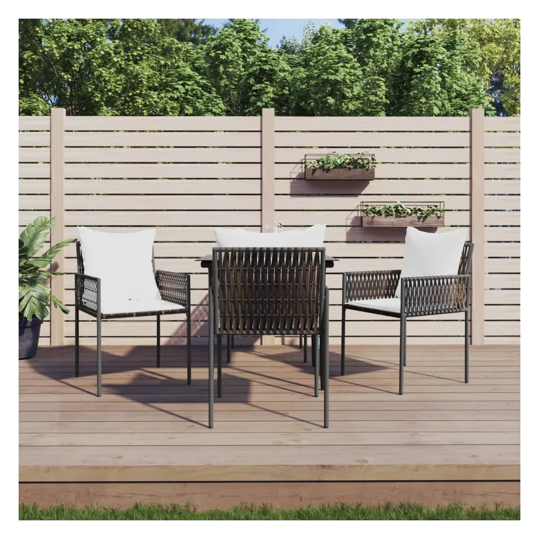Ces chaises de jardin élégantes sont un complément parfait à votre jardin et à votre terrasse, créant une impression durable ! Matériau durable : la résine tressée, également connue sous le nom de rotin poly, résiste aux intempéries et est facile à nettoyer. Elle reste belle à l'extérieur pendant une longue période. Elle offre une excellente qualité, commodité et un aspect esthétique.Cadre robuste : le cadre en acier rend les chaises de jardin robustes et stables pour une utilisation quotidienne à l'extérieur.Expérience d'assise confortable : le dossier et les accoudoirs ajoutent un confort d'assise supplémentaire à la chaise d'extérieur. De plus, les coussins bien rembourrés assurent le confort de l'assise. Remarque :Pour que vos meubles d'extérieur restent beaux, nous vous recommandons de les protéger avec une housse imperméable.