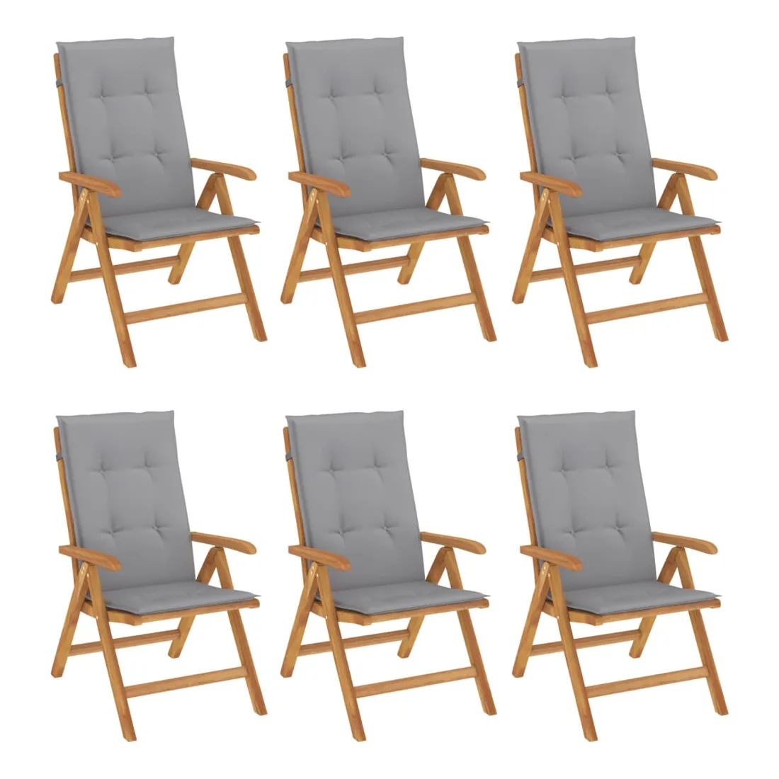 Améliorez le confort de votre espace extérieur avec ces chaises de jardin en bois classiques. Elles sont idéales pour discuter en famille et entre amis ou simplement pour profiter du bain de soleil ! Bois de teck massif : le bois de teck massif est un matériau naturel magnifique. Il a été chevronné, séché au four, puis sablé finement pour lui donner une apparence très lisse. Le bois de teck est connu pour sa résistance exceptionnelle et sa résistance aux intempéries.Dossier réglable : les dossiers des chaises de jardin sont réglables en 6 positions afin que vous puissiez toujours trouver la position la plus confortable.Fonction pliable : la chaise de jardin est pliable, ce qui vous permet de la replier pour gagner de la place lorsque vous ne l'utilisez pas.Assise confortable : la chaise d'extérieur, avec son assise à lattes, ses accoudoirs et son dossier incurvés, s'adapte à votre corps et vous offre un confort optimal. De plus, le coussin moelleux offre un confort d'assise optimal.Coussin antidérapant : des cordes bien conçues et une sangle arrière élastique permettent de fixer facilement le coussin à la chaise et de le maintenir proprement et en toute sécurité. Bon à savoir :Pour que vos meubles d'extérieur restent beaux, nous vous recommandons de les protéger avec une housse imperméable.