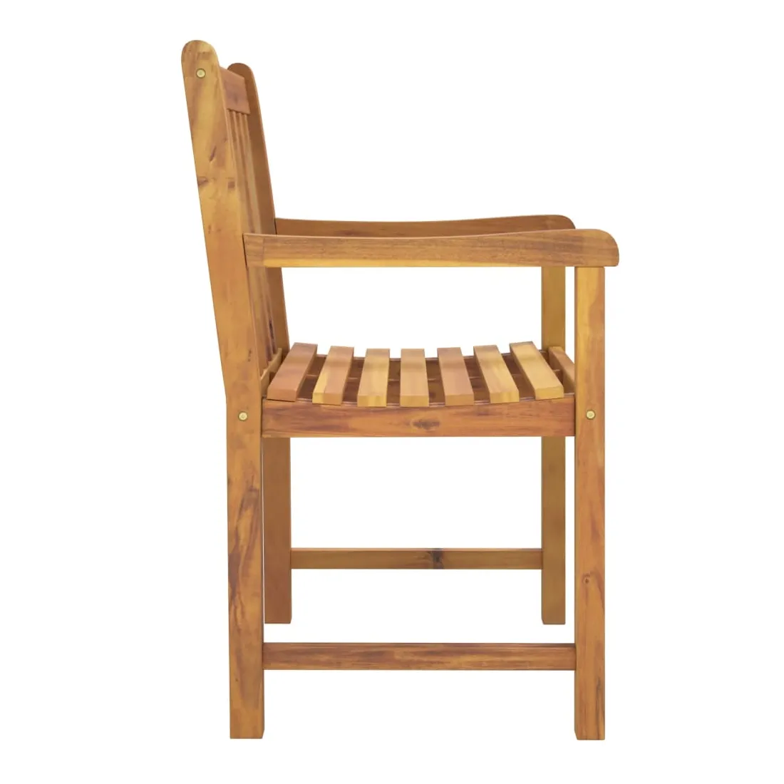 Détendez-vous sur ces chaises de jardin classiques en bois ! Bois d'acacia massif : le bois d'acacia massif est un matériau naturel magnifique. Le bois d'acacia un bois dur tropical, qui est dense, robuste et durable.Expérience d'assise confortable : doté d'accoudoirs et d'un dossier, le siège de jardin vous offre un confort optimal.Design à lattes : dotée d'un design à lattes, la chaise de jardin est simple et intemporelle. Bon à savoir :Pour que vos meubles d'extérieur restent beaux, nous vous recommandons de les protéger avec une housse imperméable.