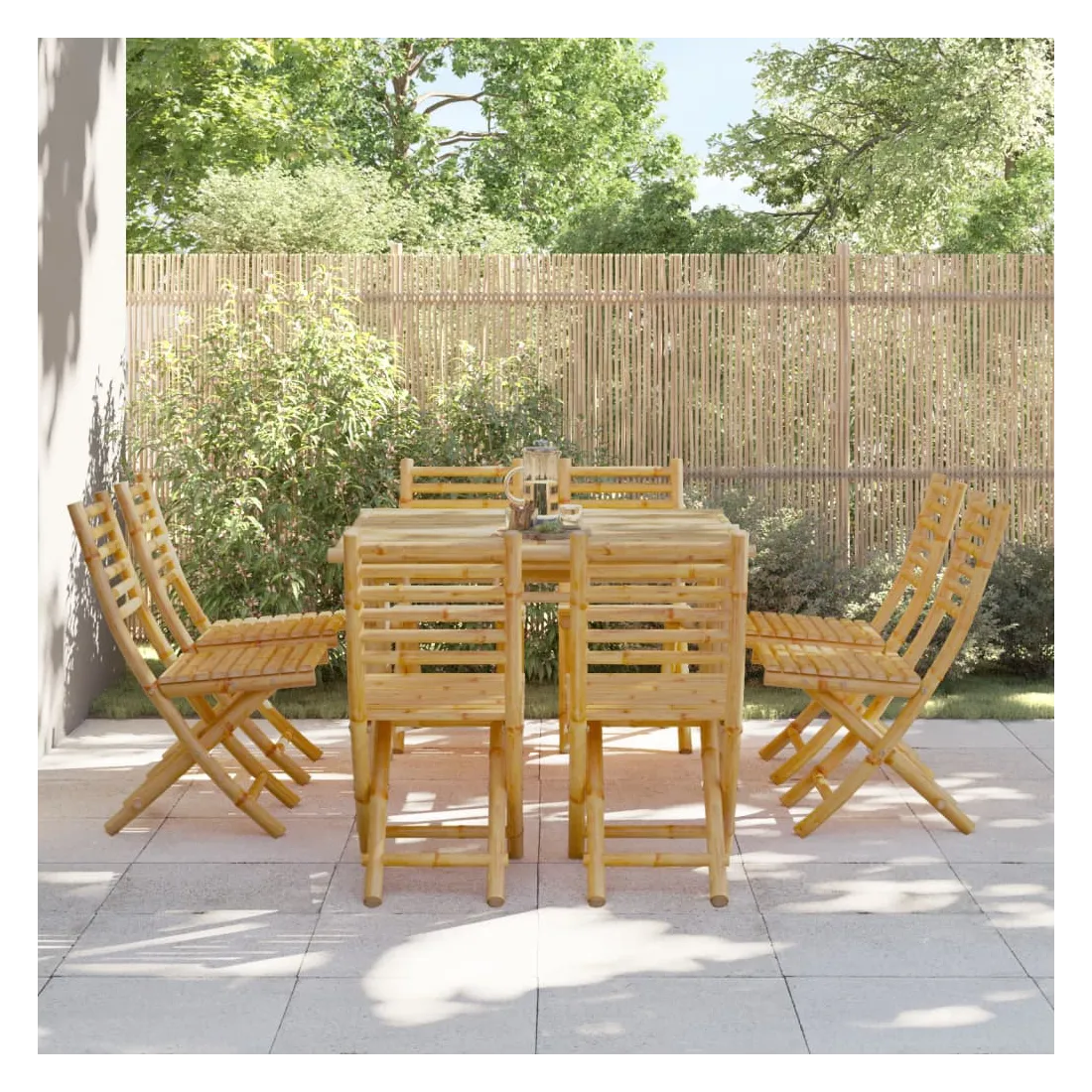 Ces chaises pliables de jardin en bambou ont un design élégant et seront un excellent choix pour dîner en plein air dans le jardin ou sur le patio. Durable et durable : en tant que matériau naturel, le bambou offre une bonne respirabilité et une faible odeur. Ces qualités rendent la chaise pliable en bambou résistant à l’eau et durable.Design pliable : la chaise à manger peut être facilement pliée lorsqu'elle n'est pas utilisée, pour un rangement et un transport faciles.Une expérience d'assise confortable : dotée d'un dossier, la chaise d'extérieur vous offre un confort optimal. Bon à savoir :Pour que vos meubles d'extérieur restent beaux, nous vous recommandons de les protéger avec une housse imperméable.