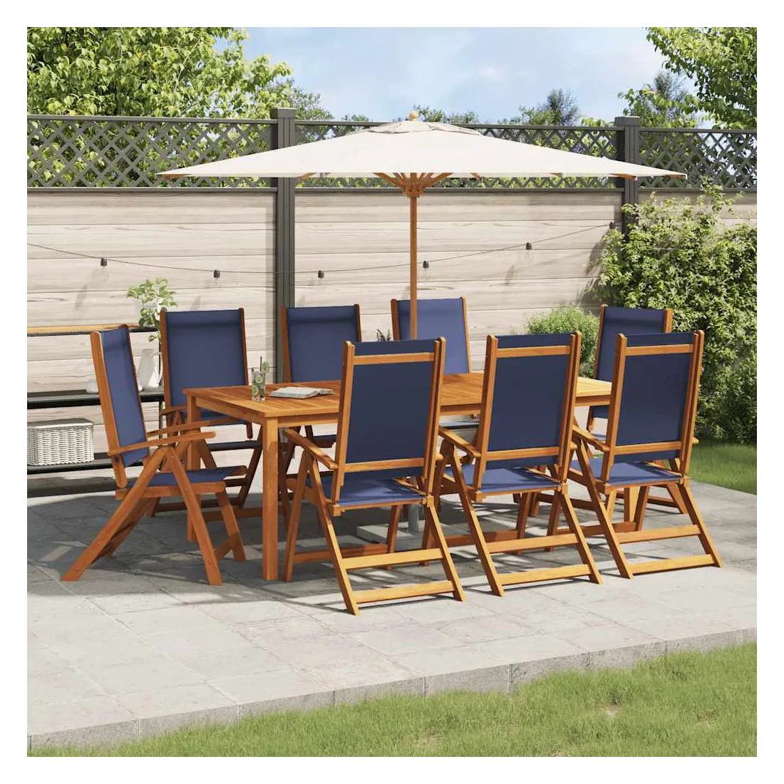 - Matériau : bois d'acacia massif avec finition à l'huile, tissu textilène