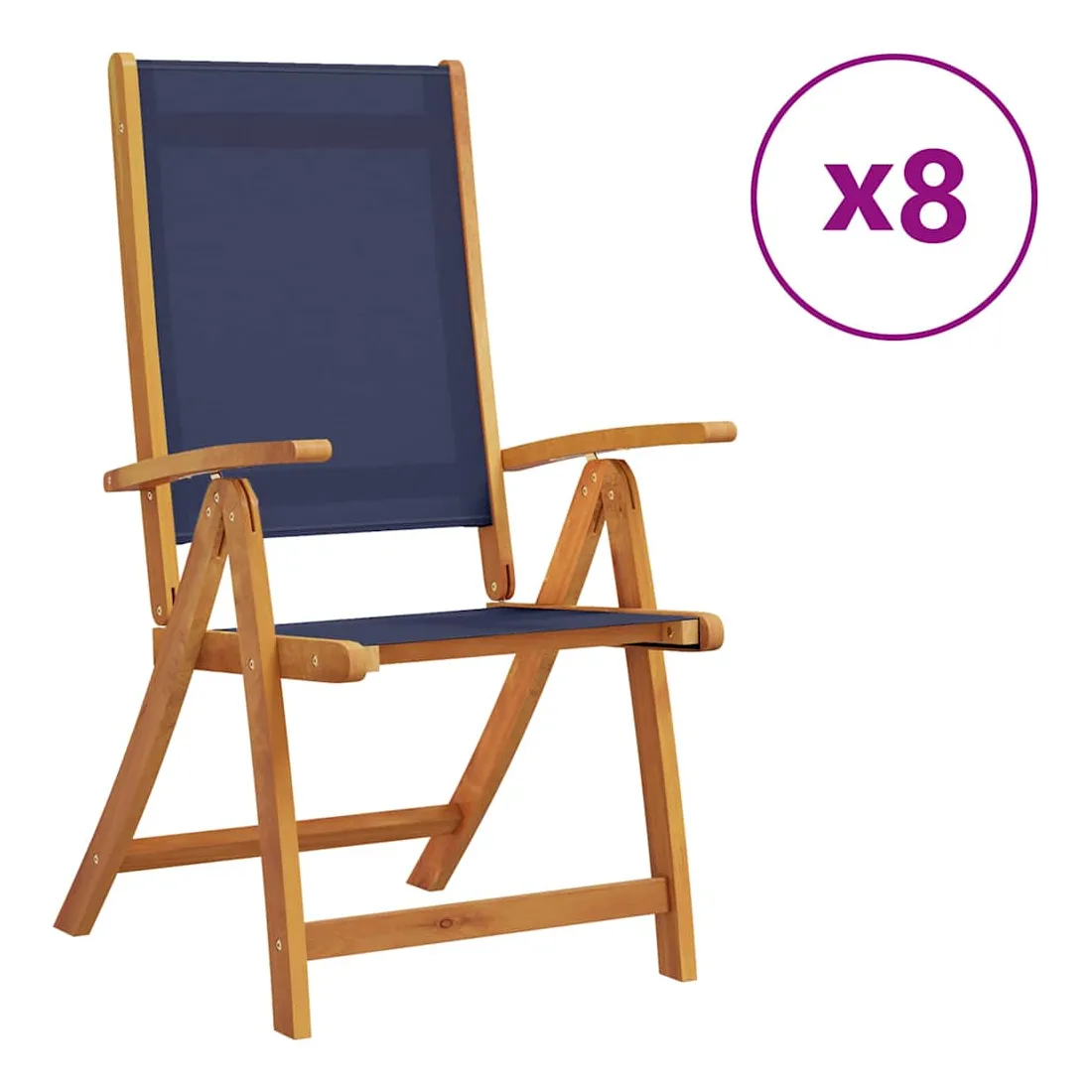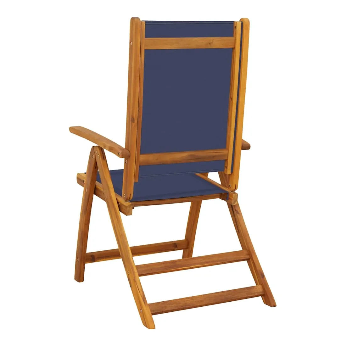 Ces chaises de jardin pliantes complèteront à merveille votre jardin, patio ou terrasse, vous permettant de passer des moments agréables avec votre famille ou vos amis. Robuste et stable : le bois d'acacia massif est connu pour sa solidité et sa durabilité. Ses couleurs variées et ses grains uniques lui confèrent un aspect attrayant. Sa stabilité et sa résistance aux intempéries en font un matériau idéal pour la fabrication de meubles d'intérieur et d'extérieur.Durable et longue durée de vie : le tissu textilène est apprécié pour sa durabilité, résistance à l'eau et à la décoloration, facilité d'entretien et protection contre les rayons UV et la moisissure, ce qui en fait un choix idéal pour le meuble d'extérieur et les structures d'ombrage.Facile à transporter et à ranger : la chaise est pliable et compacte, ce qui permet de le ranger et de le transporter facilement. C'est un choix idéal pour les activités de plein air.Dossier réglables : cette chaise de jardin est dotée d'un dossier à 5 positions réglables, ce qui vous permet de trouver facilement la position la plus confortable et la plus appropriée pour la détente. Bon à savoir :Pour que vos meubles d'extérieur restent beaux, nous vous recommandons de les protéger avec une housse imperméable.