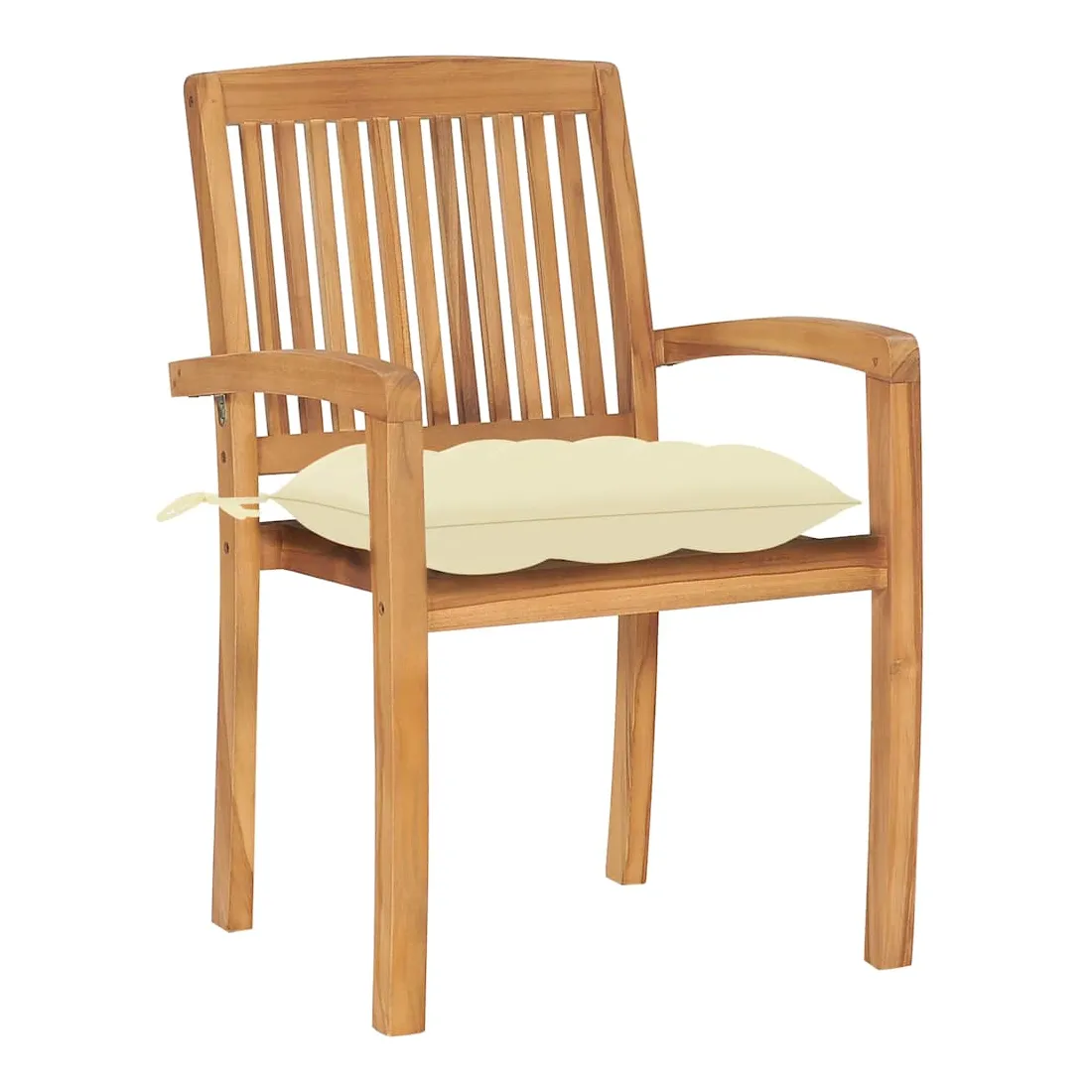 vidaXLAjoutez une touche de charme rustique à votre salle à manger, jardin ou terrasse avec cet ensemble de chaises de jardin empilables avec ensemble de coussins ! La chaise de salle à manger élève votre espace de vie intérieur ou extérieur à un niveau supérieur avec un design à lattes et élégant. Cet ensemble de meubles en teck est fabriqué à partir de bois dur de teck extrêmement durable et est chevronné, séché au four et poncé finement pour lui donner un aspect très lisse. Le bois de teck est connu pour sa solidité et sa résistance aux intempéries exceptionnelles, ce qui le rend bien plus adapté aux meubles de jardin que tout autre type de bois. Le bois de teck est le choix parfait si vous souhaitez acheter un meuble de jardin durable. Il est facile à entretenir et à nettoyer avec un chiffon humide. De plus, la chaise de salle à manger peut être empilée pour économiser de l'espace de stockage lorsqu'elle n'est pas utilisée. De plus, les coussins inclus offrent un confort supplémentaire. Chaque coussin a 2 jeux de cordes pour le fixer fermement sur la chaise. Remarque : afin de prolonger la durée de vie de vos meubles d'extérieur, nous vous recommandons de les nettoyer régulièrement et de ne pas les laisser à l'extérieur sans protection inutilement.Nettoyage : utiliser une solution savonneuse douceStockage : si possible, stockez dans un endroit frais et sec à l'intérieur. Si le produit est stocké à l'extérieur, protégez-le avec une housse imperméable. Essuyez et séchez l'excès d'eau ou de neige des surfaces planes après la pluie ou une chute de neige. Permettez une circulation d'air suffisante afin d'éviter les dommages liés à l'humidité.
