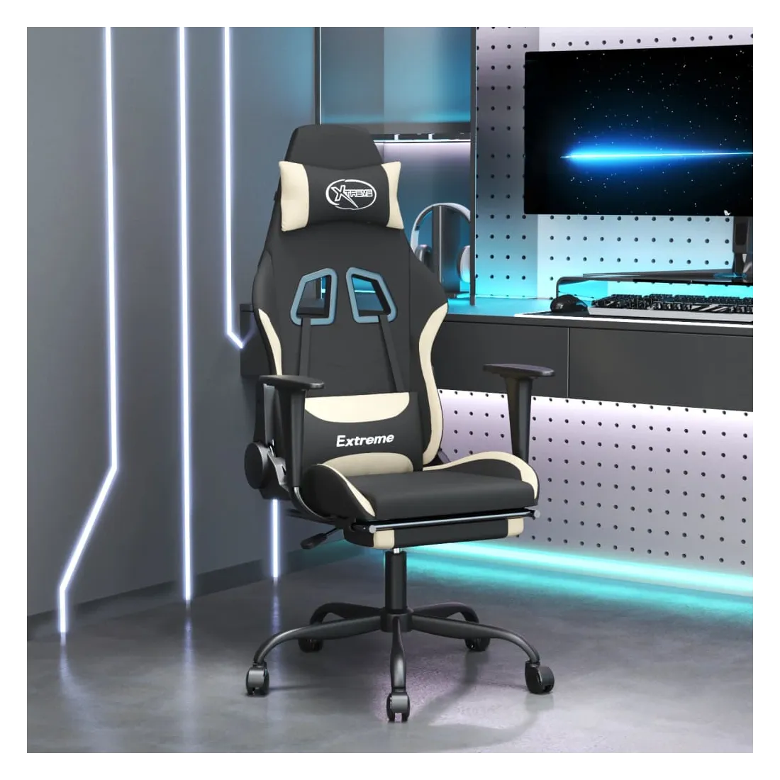 Profitez de cette chaise de jeu unique et améliorez votre expérience de jeu avec confort ! Tissu durable : le tissu présente un aspect simple et épuré, et il est respirant et durable.Dossier et hauteur réglables : il est spécialement conçu avec une fonction d'inclinaison afin que vous puissiez régler le dossier et le repose-pied selon votre confort. Utilisez le levier pour régler la hauteur de votre siège à votre convenance.Design pratique : le design pivotant à 360 degrés permet une plus grande amplitude de mouvement. De plus, il est pratique de le déplacer avec des roulettes.Cadre robuste et stable : les cadres en métal et en contreplaqué assurent robustesse et stabilité. Remarque :Chaque produit est livré avec un manuel de montage dans la boîte pour un montage facile.
