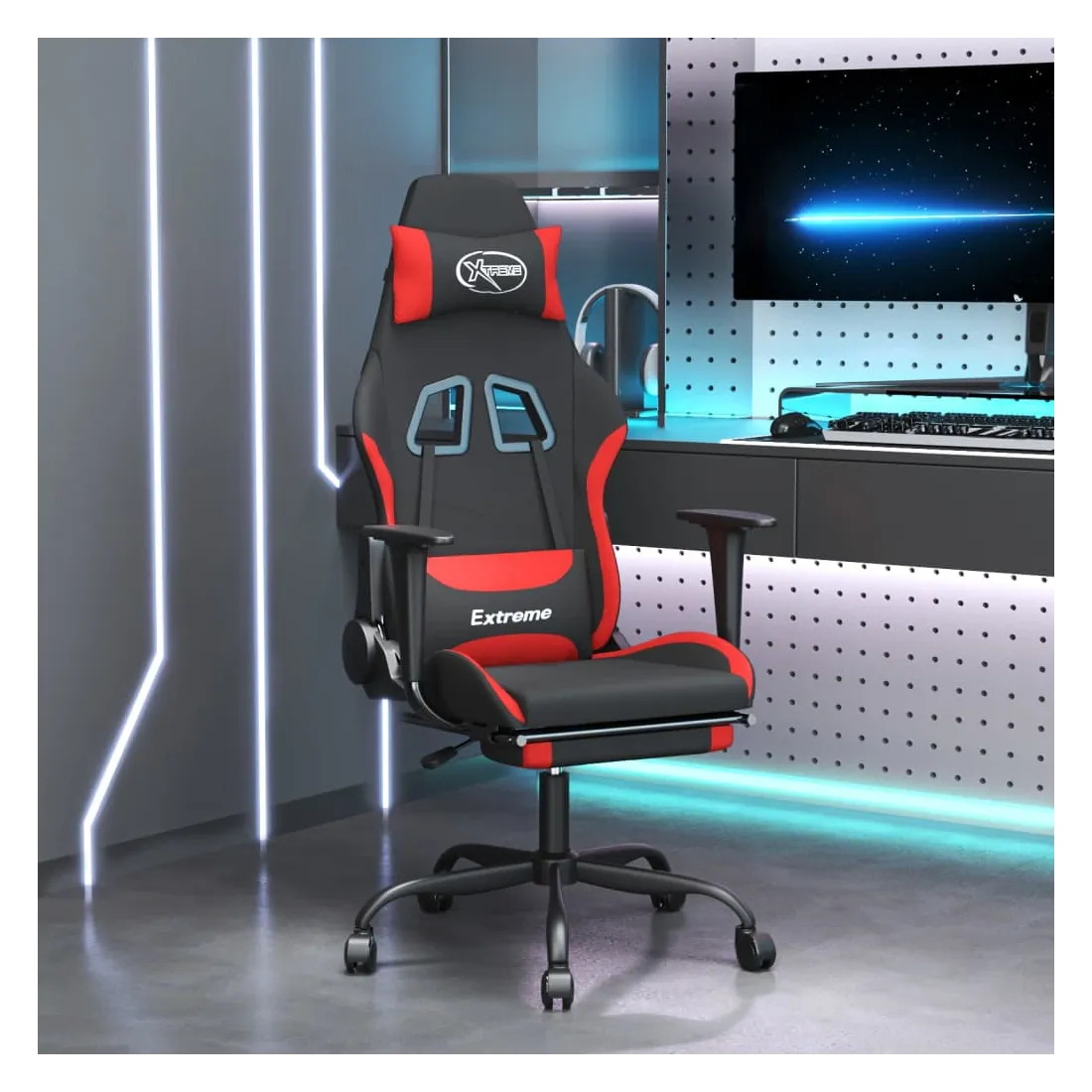 Chaise de jeu avec repose-pied Noir et rouge Tissu
