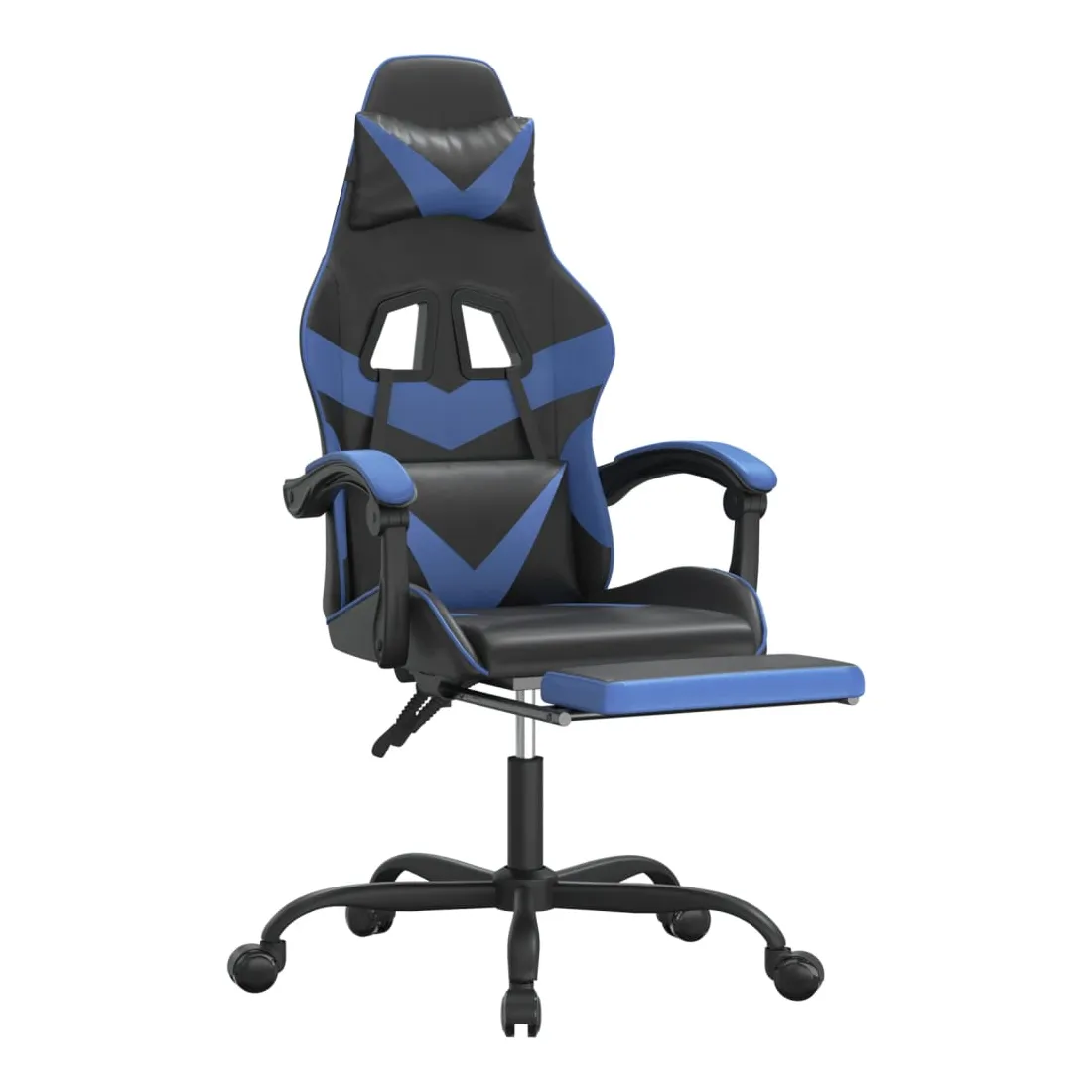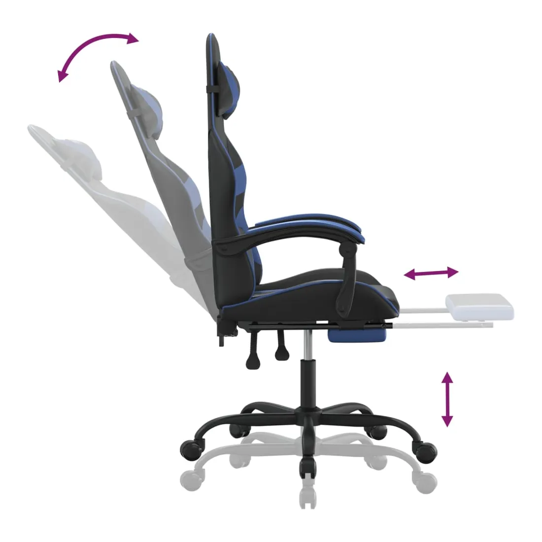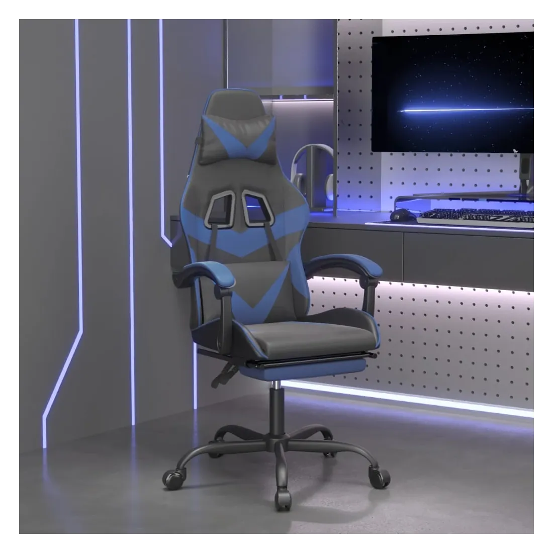 Chaise de jeu avec repose-pied Noir et bleu Similicuir
