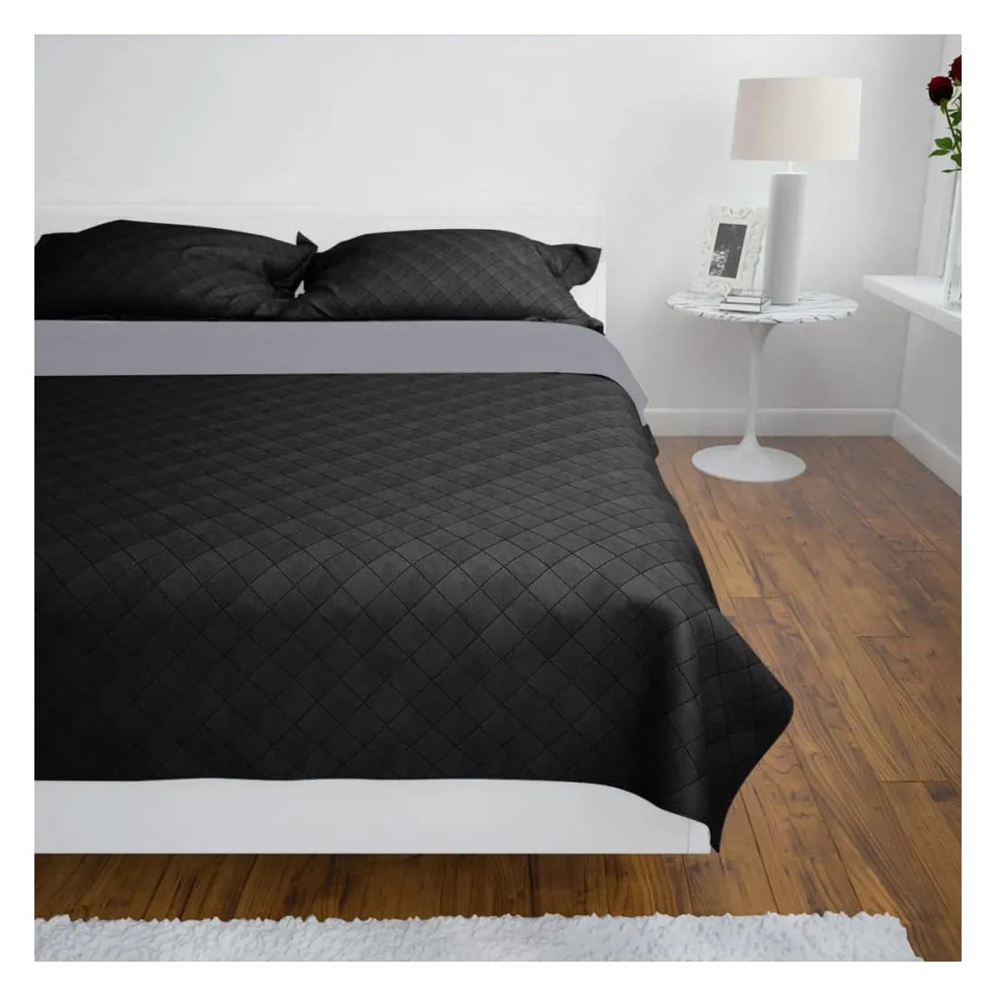 Couvre-lit à double face matelassé Noir/Gris 220x240 cm