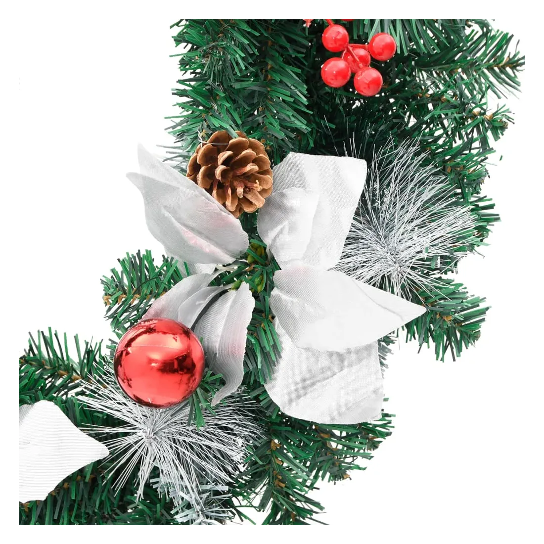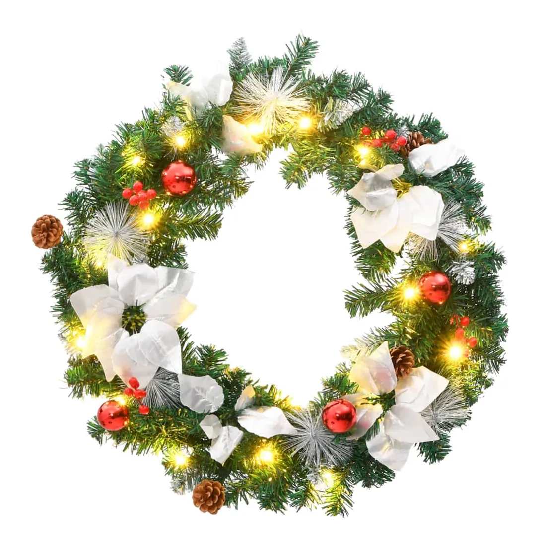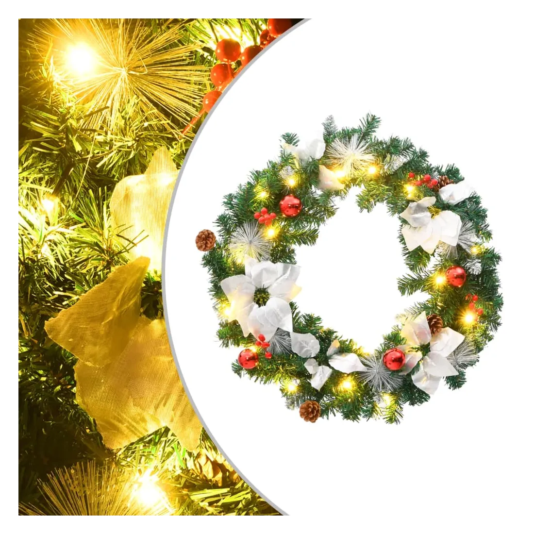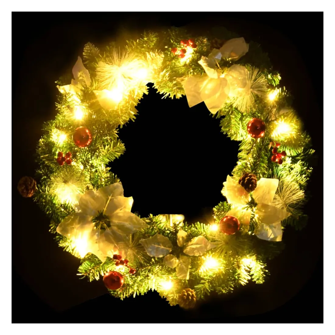 Créez l'ambiance de vacances parfaite avec notre jolie couronne de Noël ! Elle a l'air spectaculaire partout où vous l'accrochez. Cette magnifique couronne, fabriquée en PVC, convient aussi bien à un usage intérieur qu'extérieur. Les boules décoratives et les lumières LED font de cette couronne un véritable accroche-regard. Lorsqu'elle n'est pas utilisée, elle peut être facilement rangée pour les prochaines vacances, ce qui en fait un choix économique. Remarque : ce produit est doté d'un connecteur USB, mais la source d'alimentation certifiée de USB 5V n'est pas incluse.