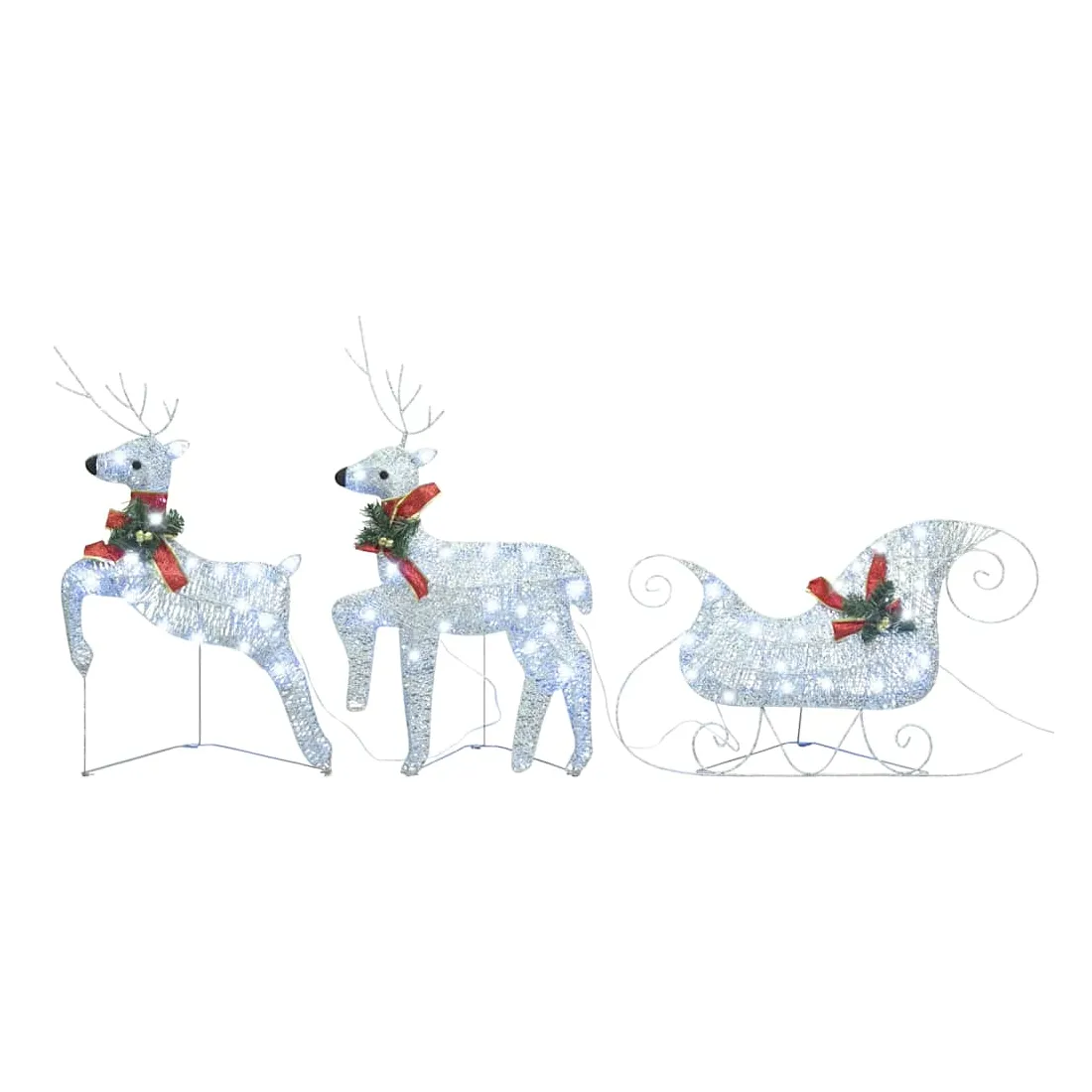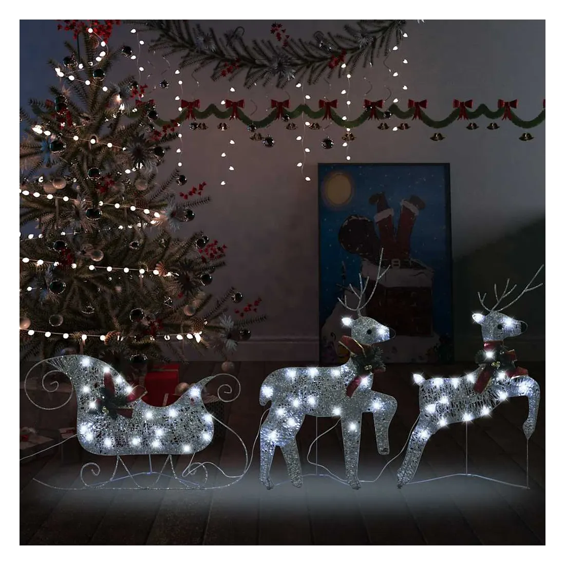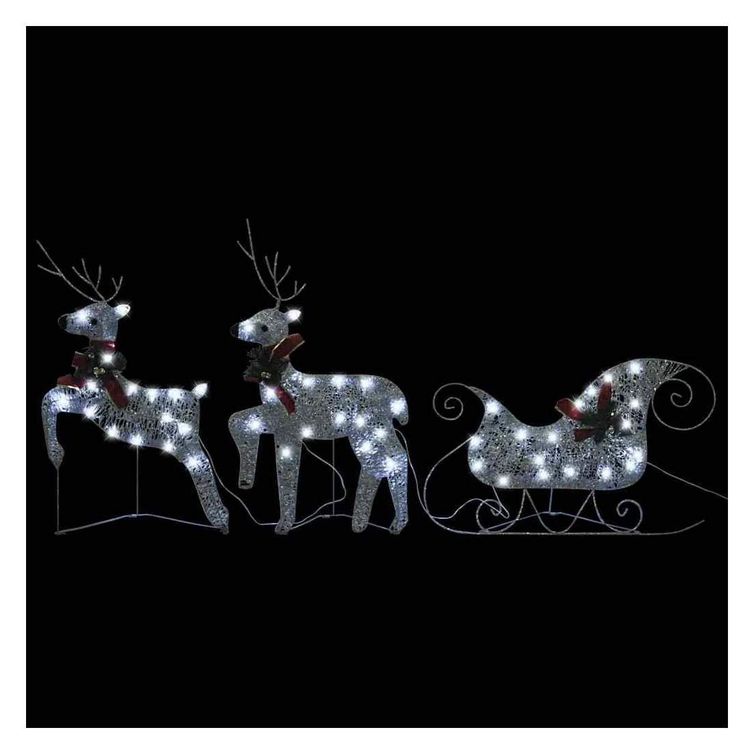 Décoration de Noël Rennes et traîneau 60 LED Extérieur Argenté