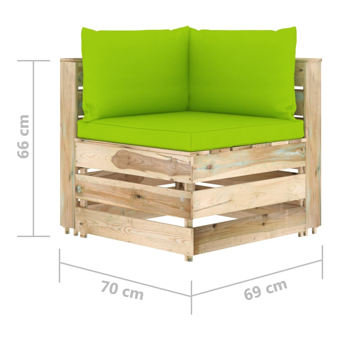• Dimensions du canapé d'angle : 69 x 70 x 66 cm (l x P x H)