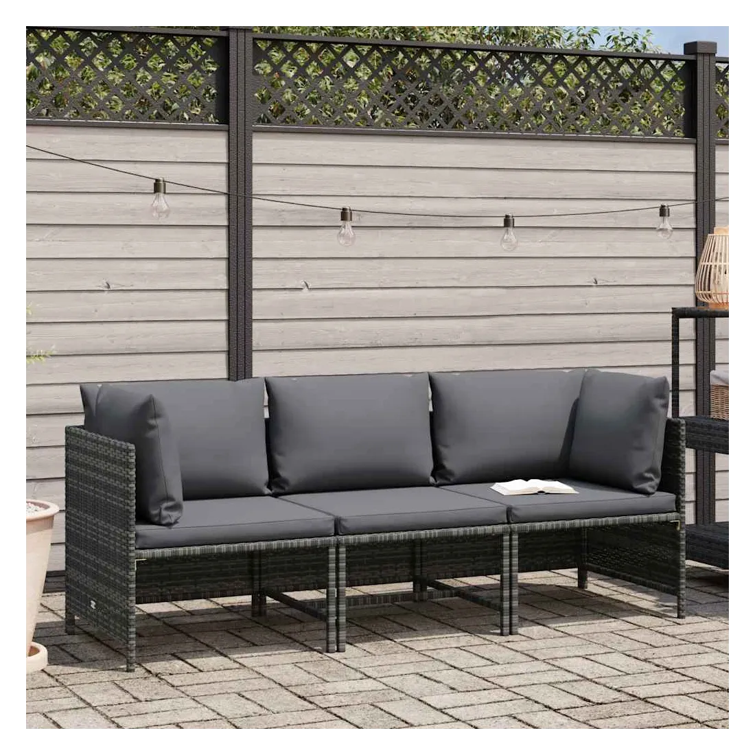 Ce canapé de jardin 3 places élégant et confortable offre un élégant coin salon pour votre jardin ou votre terrasse. Grâce à la résine tressée résistante à l'eau, le canapé de salon est facile à nettoyer et convient à une utilisation en plein air. Le cadre en acier enduit de poudre offre une stabilité supplémentaire au canapé. Le canapé d'extérieur est livré avec des coussins d'assise et des coussins de dossier bien rembourrés pour un confort suprême. Les housses en polyester nécessitant peu d'entretien peuvent également être retirées et lavées facilement. Ce canapé d'extérieur peut être facilement déplacé pour s'adapter à n'importe quel décor grâce à sa construction légère. Remarque : afin de prolonger la durée de vie de vos meubles d'extérieur, nous vous recommandons de les nettoyer régulièrement et de ne pas les laisser à l'extérieur sans protection inutilement.Nettoyage : utiliser une solution savonneuse douceStockage : si possible, stockez dans un endroit frais et sec à l'intérieur. Si le produit est stocké à l'extérieur, protégez-le avec une housse imperméable. Essuyez et séchez l'excès d'eau ou de neige des surfaces planes après la pluie ou une chute de neige. Permettez une circulation d'air suffisante afin d'éviter les dommages liés à l'humidité.