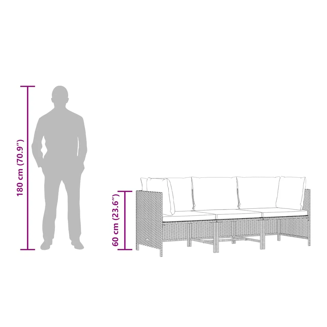 • Dimensions du canapé de milieu : 54 x 60 x 60 cm (l x P x H)