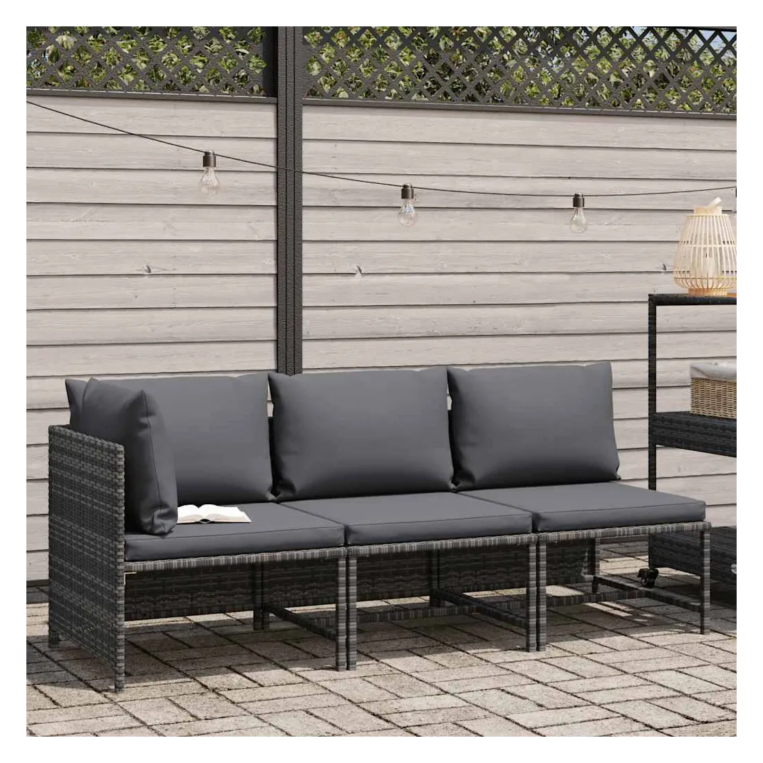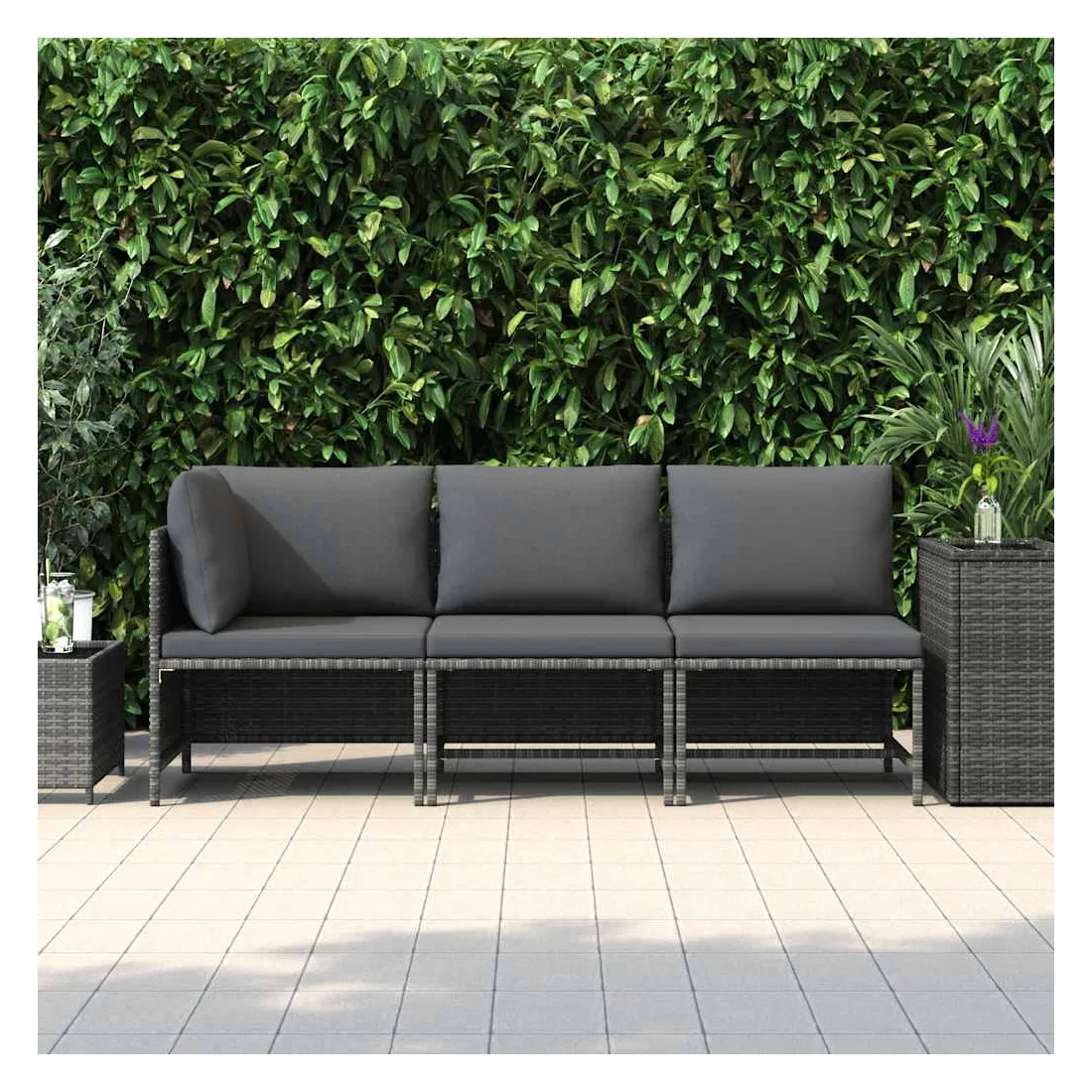Salon de jardin 3 pcs avec coussins Résine tressée Gris