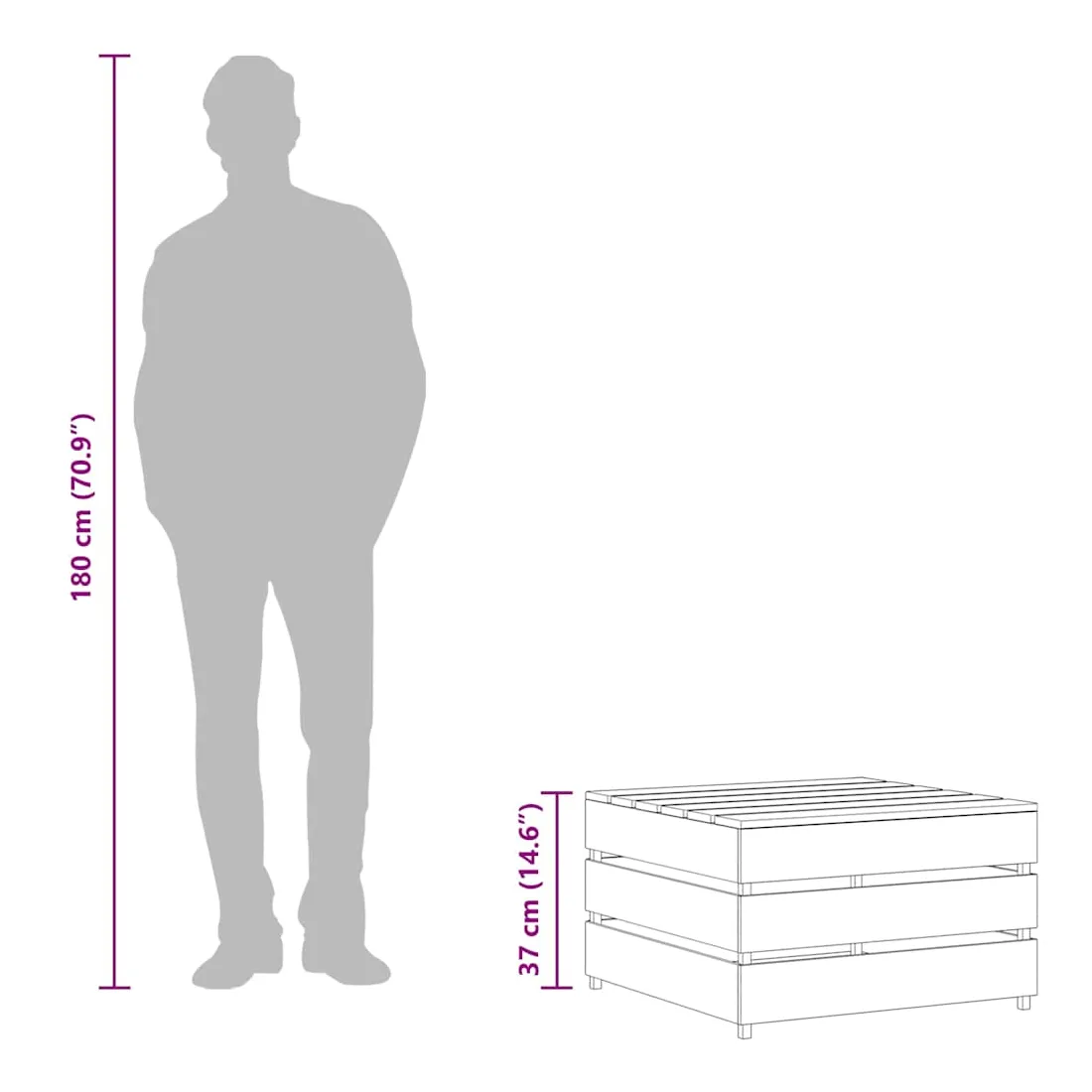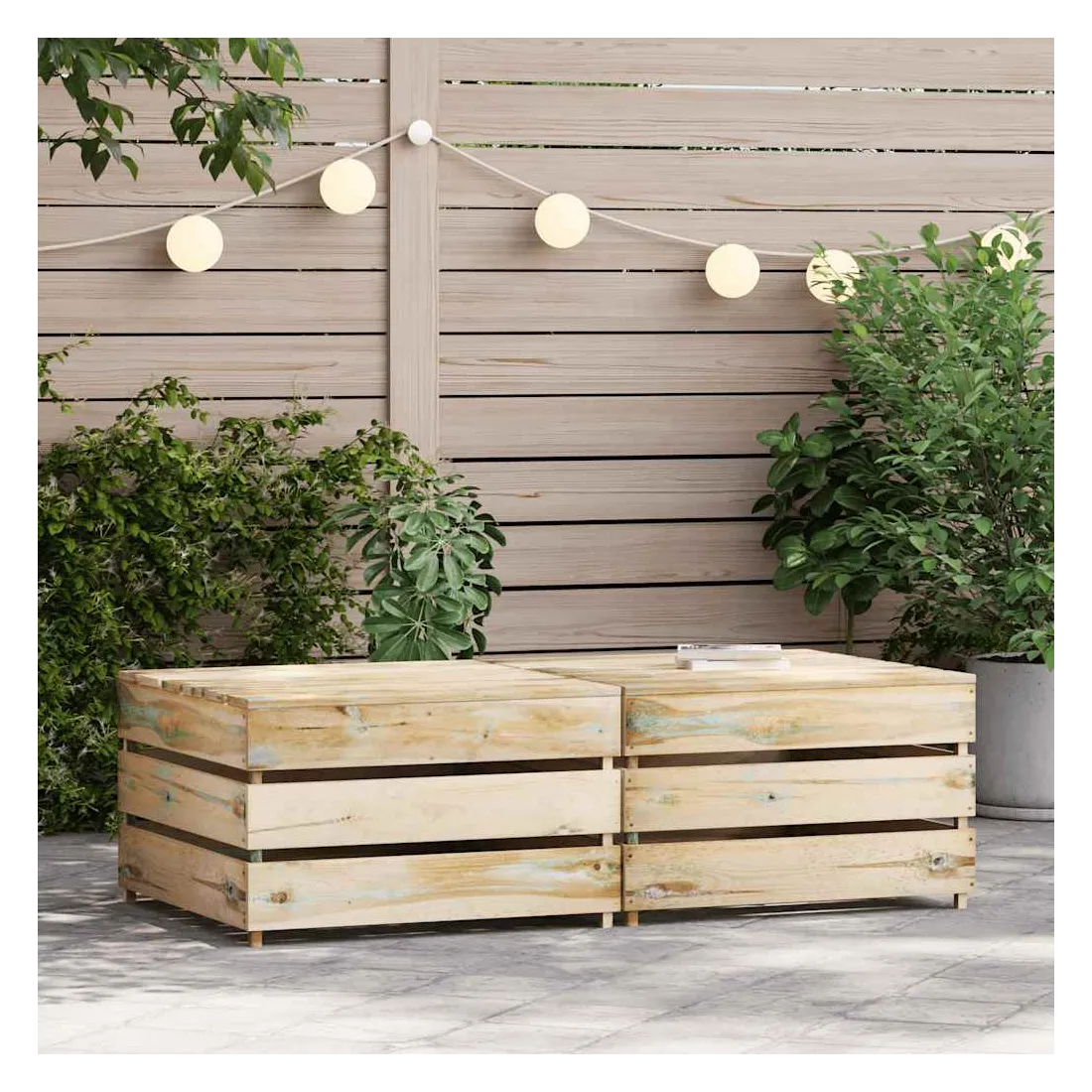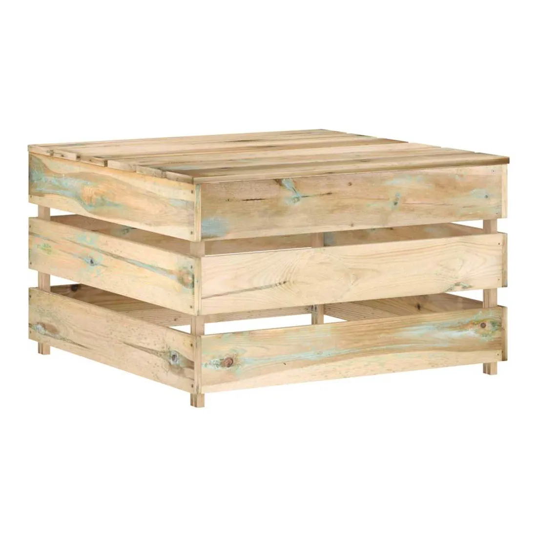 Profitez de votre espace de vie extérieur avec ces tables palette de jardin en bois de pin imprégné ! La table est fabriquée en bois de pin imprégné, résistant à la pourriture et très durable, ce qui la rend parfaitement adaptée à une utilisation en plein air. Cette table de jardin a une construction solide et nécessite peu d'entretien. Avec des coussins (non inclus), elle peut fonctionner comme un pouf, offrant le plus grand confort pour vous et vos invités. De plus, cette table en bois présente également une conception modulaire, la rendant complètement flexible et facile à déplacer pour s'adapter à n'importe quelle configuration. Vous pouvez la combiner avec d'autres segments modulaires disponibles dans le menu déroulant pour créer vos propres configurations de salon de jardin personnelles ! Remarque: Afin de prolonger la durée de vie de vos meubles d'extérieur, nous vous recommandons de les nettoyer régulièrement et de ne pas les laisser à l'extérieur sans protection inutilement.Nettoyage: Utiliser une solution savonneuse douceStockage: Si possible, stockez dans un endroit frais et sec à l'intérieur. Si le produit est stocké à l'extérieur, protégez-le avec une housse imperméable. Essuyez et séchez l'excès d'eau ou de neige des surfaces planes après la pluie ou une chute de neige. Permettez une circulation d'air suffisante afin d'éviter les dommages liés à l'humidité.