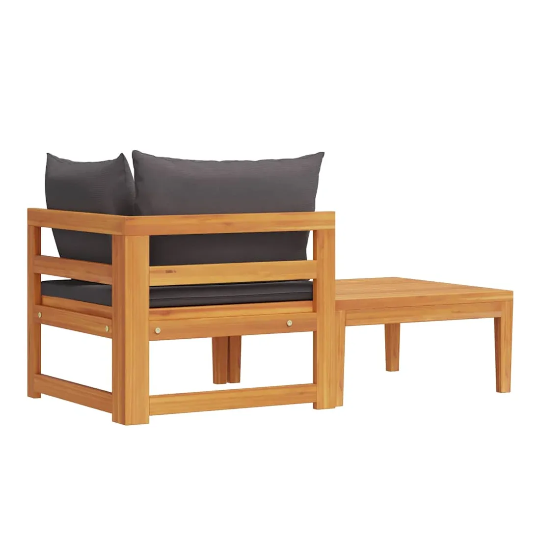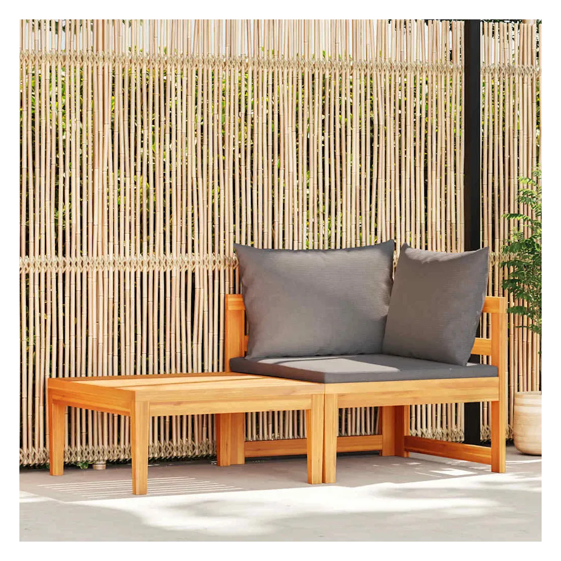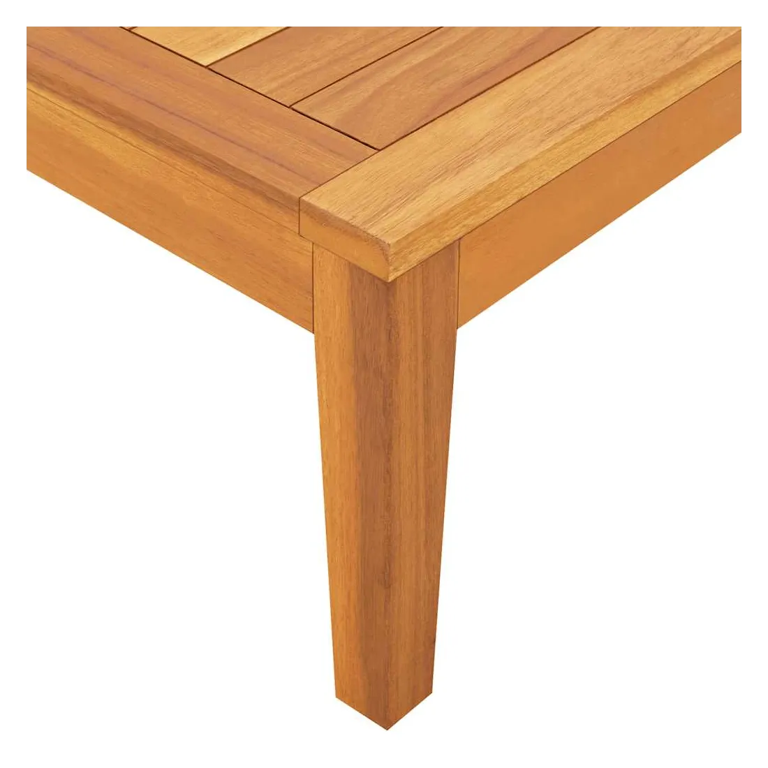 Profitez d’un moment de détente agréable avec vos amis ou votre famille dans l’espace d'extérieur sur cet ensemble de salon en bois ! Cet ensemble de salon d'extérieur est fabriqué en bois d'acacia massif, un bois dur aux grains denses. Cet ensemble de salon de jardin magnifiquement conçu est stable, durable et accrocheur. De plus, le savoir-faire exquis et les beaux grains de bois rendent chaque pièce légèrement différente l'une de l'autre. De plus, les coussins inclus ajoutent plus de confort pendant le repos. Le dessus de table robuste est idéal pour placer des boissons et de la nourriture. Remarque : afin de prolonger la durée de vie de vos meubles d'extérieur, nous vous recommandons de les nettoyer régulièrement et de ne pas les laisser à l'extérieur sans protection inutilement.Nettoyage : Utiliser une solution savonneuse douce.Stockage : si possible, stockez dans un endroit frais et sec à l'intérieur. Si le produit est stocké à l'extérieur, protégez-le avec une housse imperméable. Essuyez et séchez l'excès d'eau ou de neige des surfaces planes après la pluie ou une chute de neige. Permettez une circulation d'air suffisante afin d'éviter les dommages liés à l'humidité.