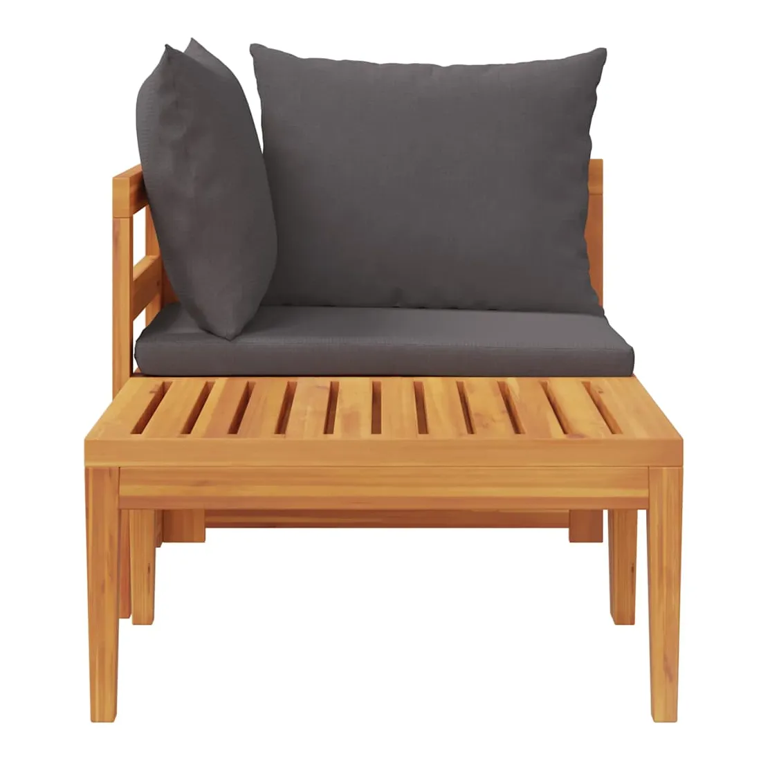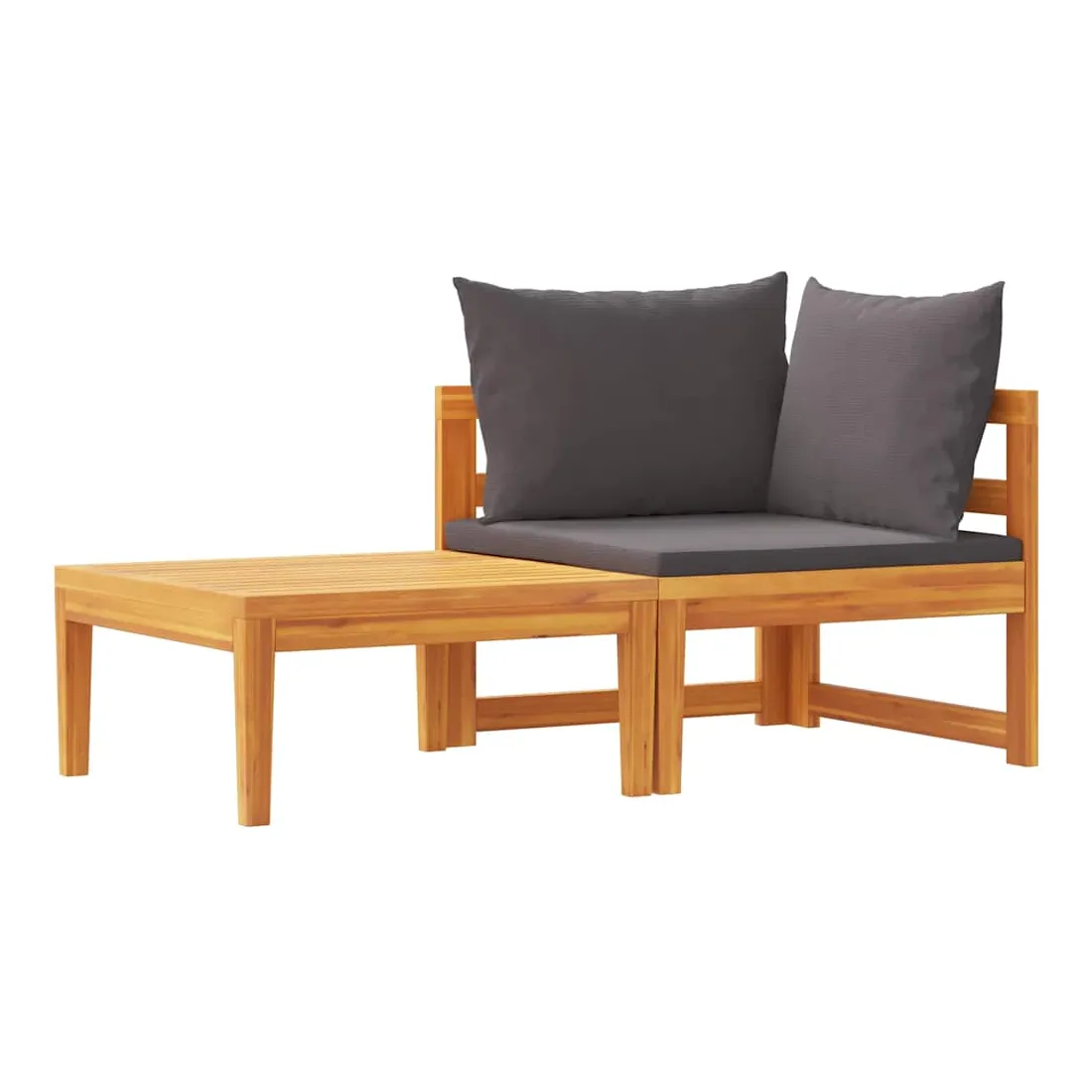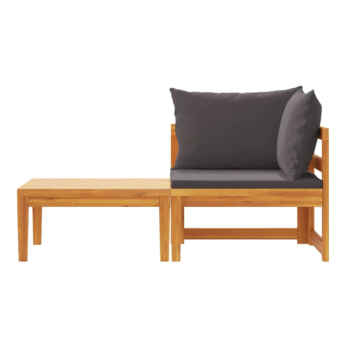 Profitez d’un moment de détente agréable avec vos amis ou votre famille dans l’espace d'extérieur sur cet ensemble de salon en bois ! Cet ensemble de salon d'extérieur est fabriqué en bois d'acacia massif, un bois dur aux grains denses. Cet ensemble de salon de jardin magnifiquement conçu est stable, durable et accrocheur. De plus, le savoir-faire exquis et les beaux grains de bois rendent chaque pièce légèrement différente l'une de l'autre. De plus, les coussins inclus ajoutent plus de confort pendant le repos. Le dessus de table robuste est idéal pour placer des boissons et de la nourriture. Remarque : afin de prolonger la durée de vie de vos meubles d'extérieur, nous vous recommandons de les nettoyer régulièrement et de ne pas les laisser à l'extérieur sans protection inutilement.Nettoyage : Utiliser une solution savonneuse douce.Stockage : si possible, stockez dans un endroit frais et sec à l'intérieur. Si le produit est stocké à l'extérieur, protégez-le avec une housse imperméable. Essuyez et séchez l'excès d'eau ou de neige des surfaces planes après la pluie ou une chute de neige. Permettez une circulation d'air suffisante afin d'éviter les dommages liés à l'humidité.