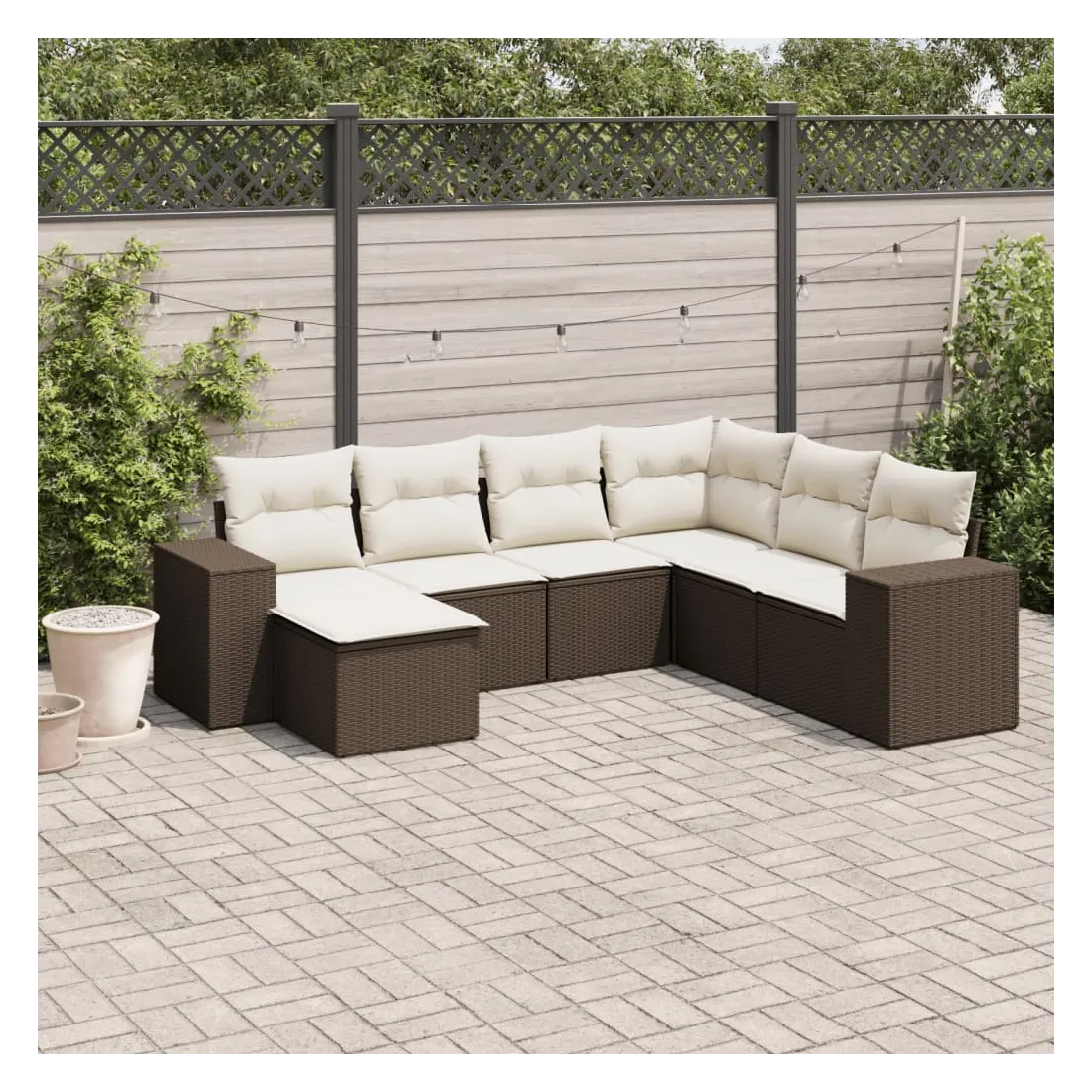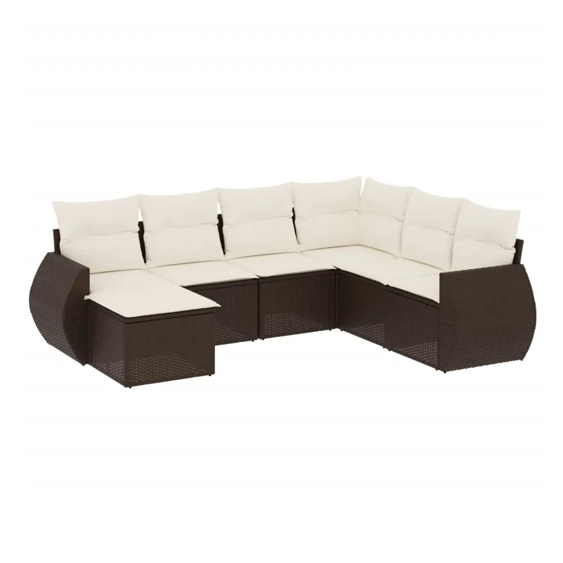 Salon de jardin avec coussins 7 pcs marron résine tressée