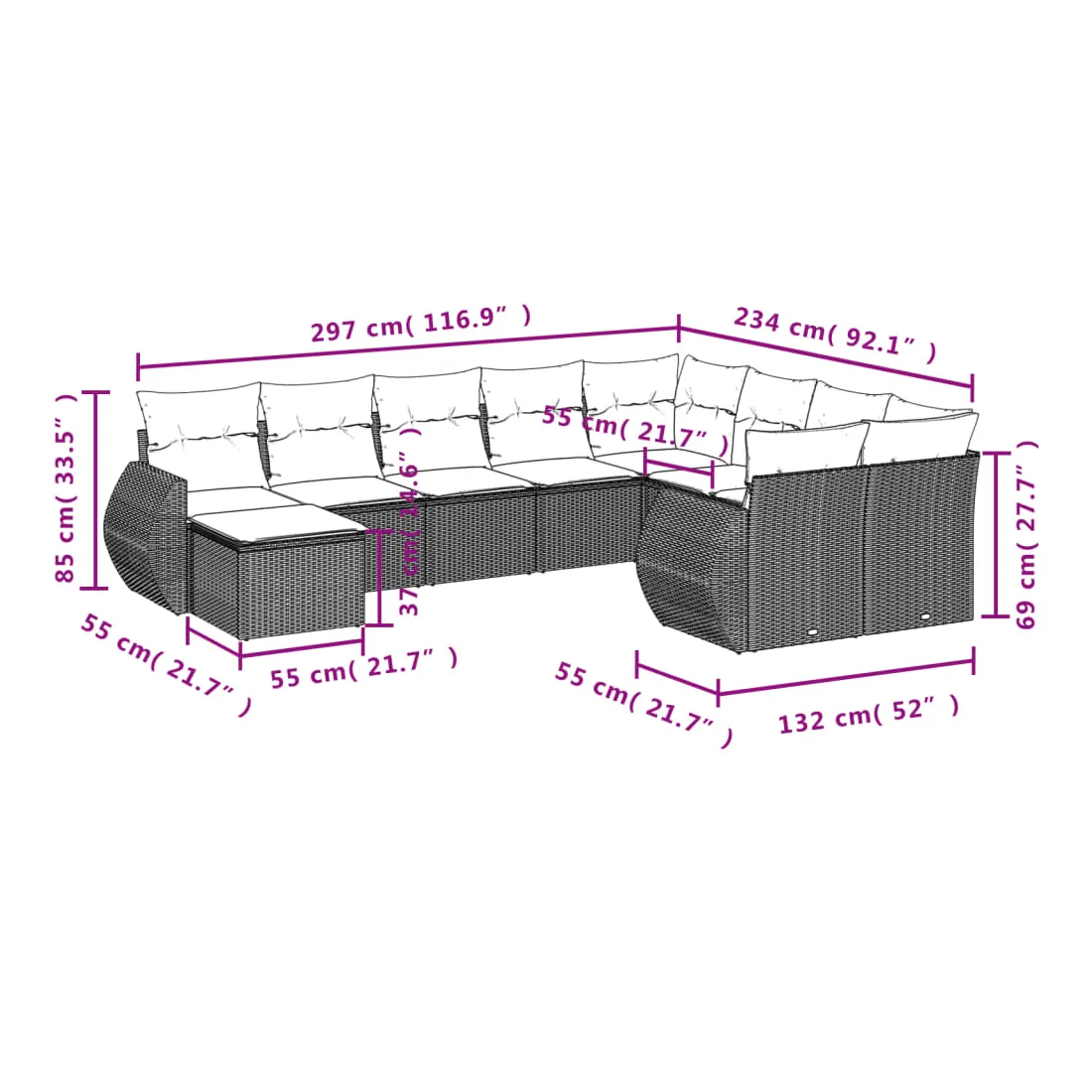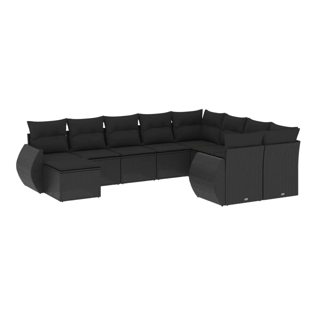 Salon de jardin 10 pcs avec coussins noir résine tressée
