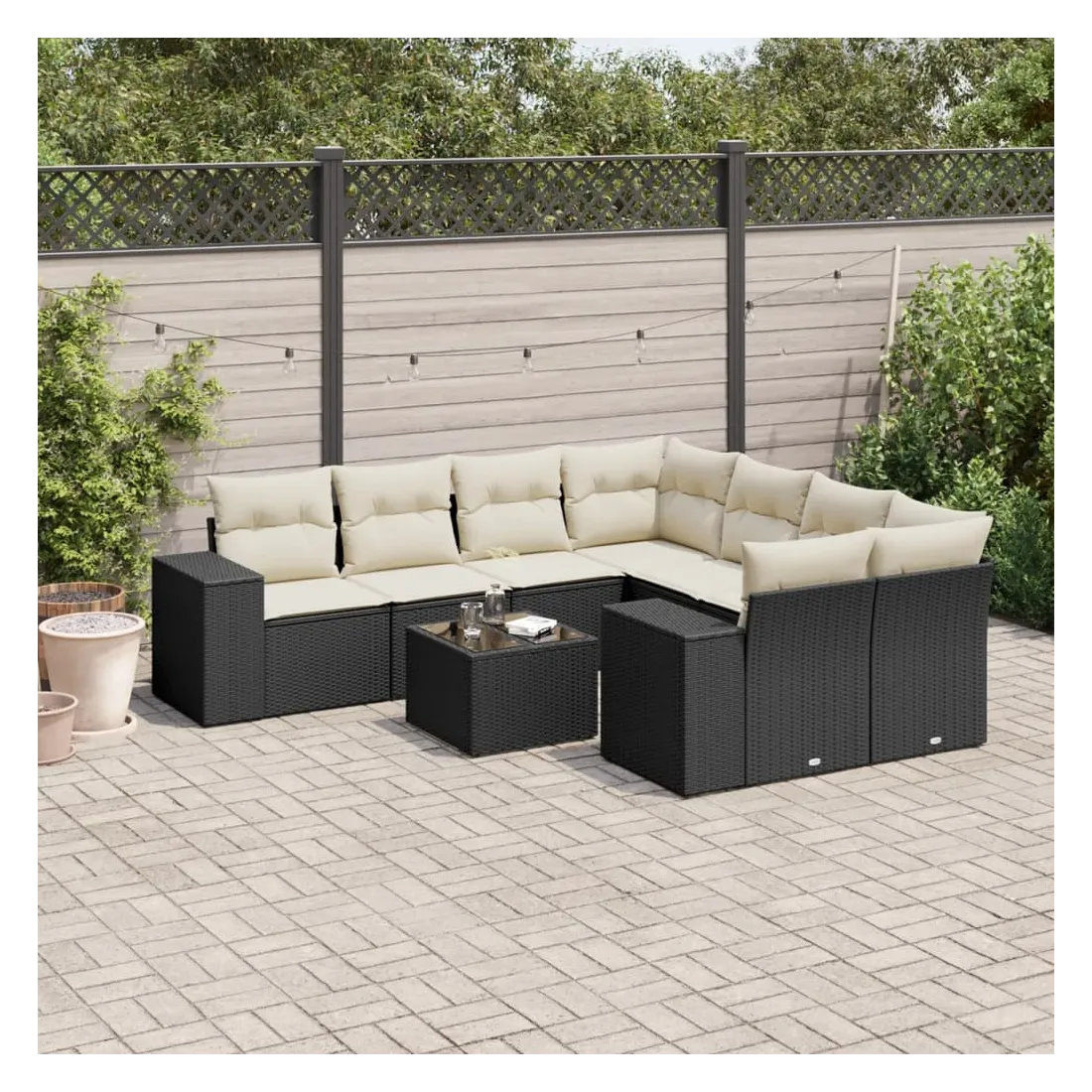 Cet ensemble de canapés de jardin est le complément parfait de votre arrière-cour, terrasse ou patio, offrant un espace confortable et accueillant pour discuter avec la famille et les amis ou simplement se détendre et profiter de l'extérieur. Matériau durable : la résine tressée, également connue sous le nom de poly rotin, est un matériau synthétique solide et nécessitant peu d'entretien qui ressemble au rotin naturel. Il est léger, facile à nettoyer et couramment utilisé pour les meubles d'extérieur en raison de sa durabilité et de ses propriétés de résistance aux intempéries.Dessus en verre : le dessus de la table d'extérieur est fabriqué en verre trempé solide et durable, ce qui le rend facile à nettoyer avec un chiffon humide et ajoute une touche d'élégance à votre espace extérieur.Expérience d'assise confortable : ce mobilier d'extérieur, doté de coussins épais, offre une expérience d'assise confortable.Housse amovible et lavable : ces coussins de siège sont dotés de housses amovibles pour un lavage et un entretien faciles.Conception modulaire : cet ensemble de meubles d'extérieur a une conception modulaire, ce qui le rend complètement flexible et facile à déplacer, afin que vous puissiez créer un agencement de meubles d'extérieur personnalisé. Bon à savoir :Pour que vos meubles d'extérieur restent beaux, nous vous recommandons de les protéger avec une housse imperméable.