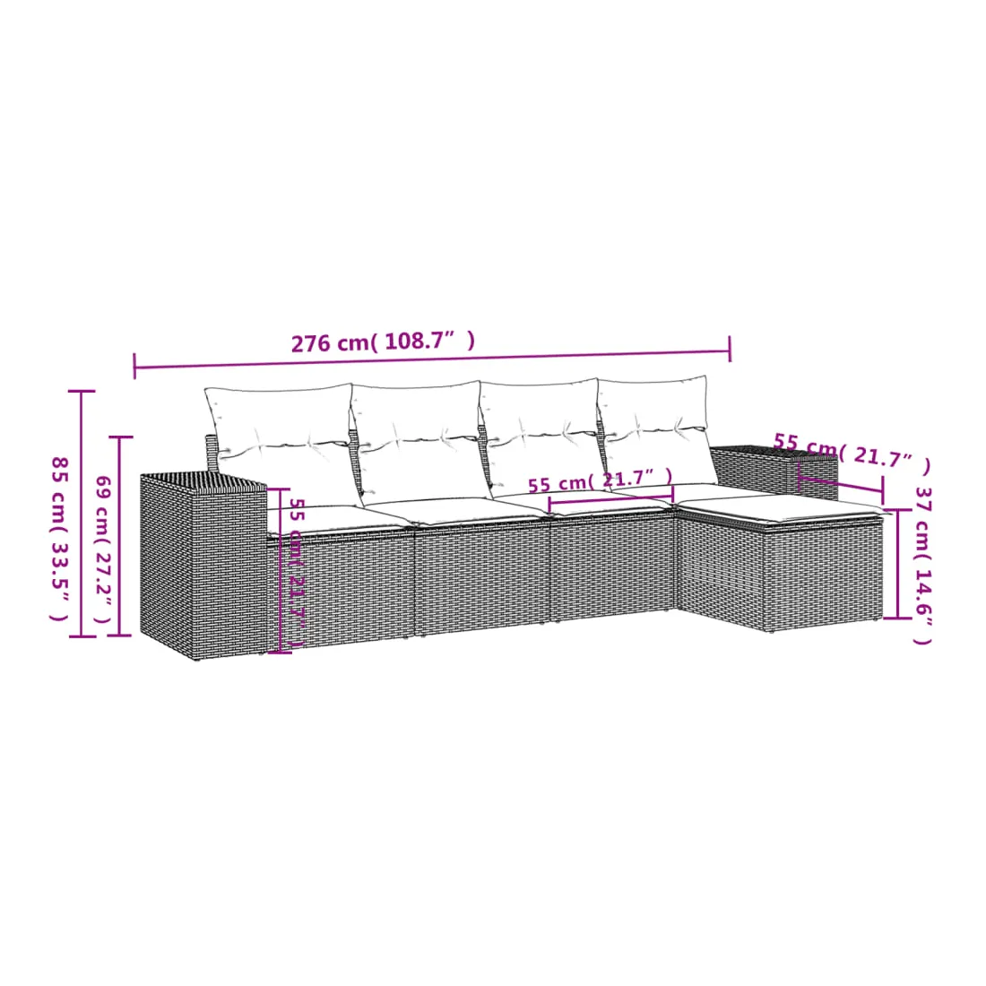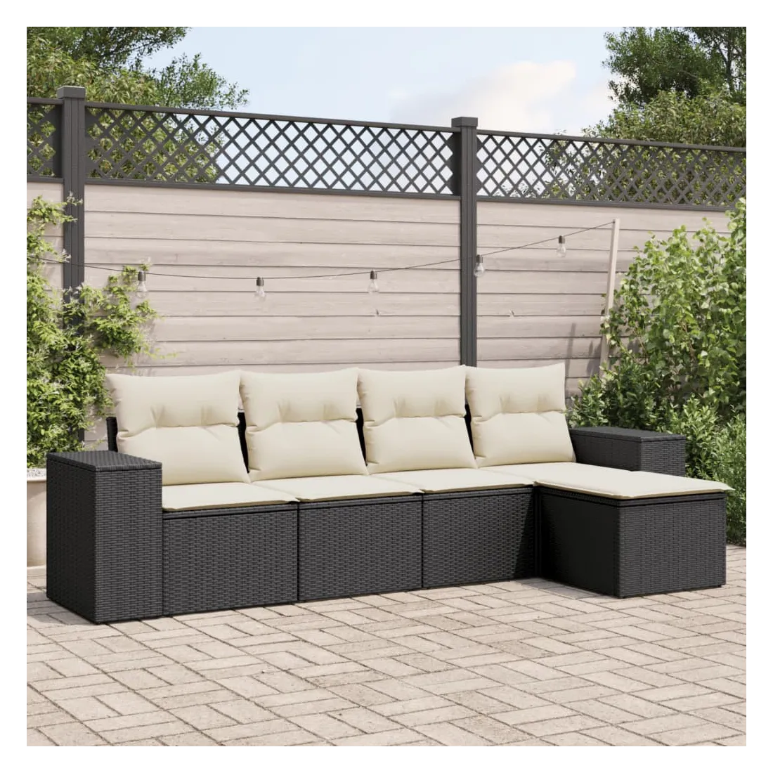 Cet ensemble de canapés de jardin est le complément parfait de votre arrière-cour, terrasse ou patio, offrant un espace confortable et accueillant pour discuter avec la famille et les amis ou simplement se détendre et profiter de l'extérieur. Matériau durable : la résine tressée, également connue sous le nom de poly rotin, est un matériau synthétique solide et nécessitant peu d'entretien qui ressemble au rotin naturel. Il est léger, facile à nettoyer et couramment utilisé pour les meubles d'extérieur en raison de sa durabilité et de ses propriétés de résistance aux intempéries.Expérience d'assise confortable : ce mobilier d'extérieur, doté de coussins épais, offre une expérience d'assise confortable.Housse amovible et lavable : ces coussins de siège sont dotés de housses amovibles pour un lavage et un entretien faciles.Conception modulaire : cet ensemble de meubles d'extérieur a une conception modulaire, ce qui le rend complètement flexible et facile à déplacer, afin que vous puissiez créer un agencement de meubles d'extérieur personnalisé. Bon à savoir :Pour que vos meubles d'extérieur restent beaux, nous vous recommandons de les protéger avec une housse imperméable.