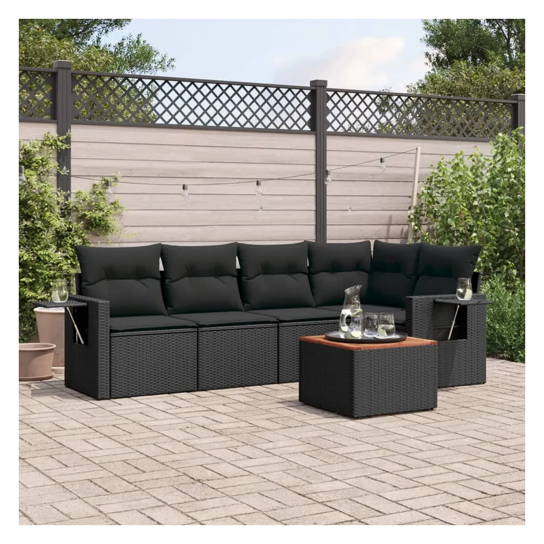 Cet ensemble de canapés de jardin est le complément parfait de votre arrière-cour, terrasse ou patio, offrant un espace confortable et accueillant pour discuter avec la famille et les amis ou simplement se détendre et profiter de l'extérieur. Matériau durable : la résine tressée, également connue sous le nom de poly rotin, est un matériau synthétique solide et nécessitant peu d'entretien qui ressemble au rotin naturel. Il est léger, facile à nettoyer et couramment utilisé pour les meubles d'extérieur en raison de sa durabilité et de ses propriétés de résistance aux intempéries.Table d'appoint pratique : ce mobilier d'extérieur comprend une table d'appoint pliable avec un ressort à gaz sur les accoudoirs, offrant un endroit pratique pour garder vos essentiels à portée de main.Dessus stable et facile à nettoyer : cette table de jardin a un dessus en bois d'acacia robuste, durable et facile à nettoyer avec un chiffon humide.Housse amovible et lavable : ces coussins de siège sont dotés de housses amovibles pour un lavage et un entretien faciles.Conception modulaire : cet ensemble de meubles d'extérieur a une conception modulaire, ce qui le rend complètement flexible et facile à déplacer, afin que vous puissiez créer un agencement de meubles d'extérieur personnalisé. Bon à savoir :Pour que vos meubles d'extérieur restent beaux, nous vous recommandons de les protéger avec une housse imperméable.