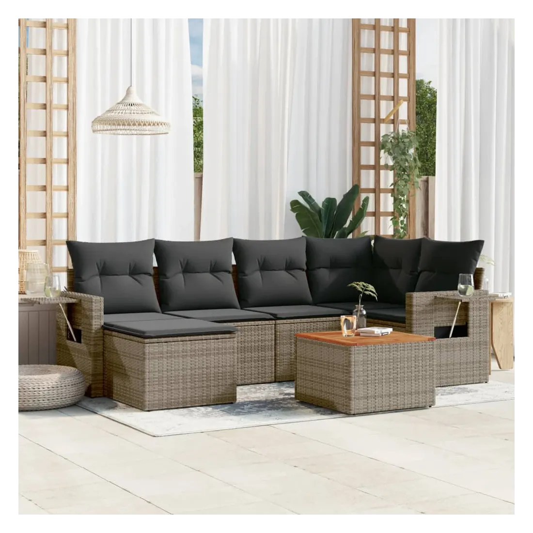 Cet ensemble de canapés de jardin est le complément parfait de votre arrière-cour, terrasse ou patio, offrant un espace confortable et accueillant pour discuter avec la famille et les amis ou simplement se détendre et profiter de l'extérieur. Matériau durable : la résine tressée, également connue sous le nom de poly rotin, est un matériau synthétique solide et nécessitant peu d'entretien qui ressemble au rotin naturel. Il est léger, facile à nettoyer et couramment utilisé pour les meubles d'extérieur en raison de sa durabilité et de ses propriétés de résistance aux intempéries.Table d'appoint pratique : ce mobilier d'extérieur comprend une table d'appoint pliable avec un ressort à gaz sur les accoudoirs, offrant un endroit pratique pour garder vos essentiels à portée de main.Dessus stable et facile à nettoyer : cette table de jardin a un dessus en bois d'acacia robuste, durable et facile à nettoyer avec un chiffon humide.Housse amovible et lavable : ces coussins de siège sont dotés de housses amovibles pour un lavage et un entretien faciles.Conception modulaire : cet ensemble de meubles d'extérieur a une conception modulaire, ce qui le rend complètement flexible et facile à déplacer, afin que vous puissiez créer un agencement de meubles d'extérieur personnalisé. Bon à savoir :Pour que vos meubles d'extérieur restent beaux, nous vous recommandons de les protéger avec une housse imperméable.