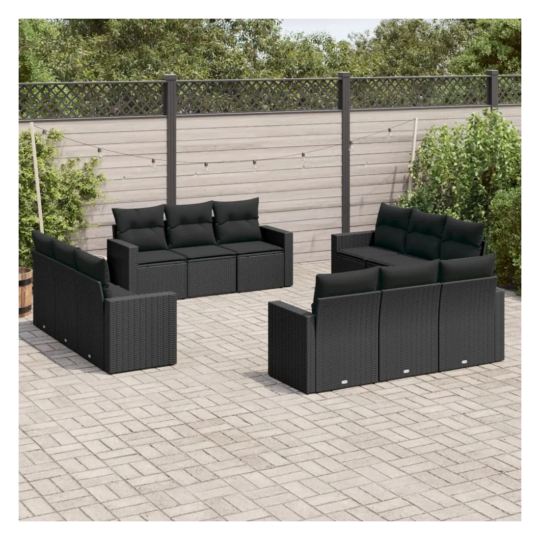 Cet ensemble de canapés de jardin est le complément parfait de votre arrière-cour, terrasse ou patio, offrant un espace confortable et accueillant pour discuter avec la famille et les amis ou simplement se détendre et profiter de l'extérieur. Matériau durable : la résine tressée, également connue sous le nom de poly rotin, est un matériau synthétique solide et nécessitant peu d'entretien qui ressemble au rotin naturel. Il est léger, facile à nettoyer et couramment utilisé pour les meubles d'extérieur en raison de sa durabilité et de ses propriétés de résistance aux intempéries.Fonction de rangement avec sac résistant à l'eau : chaque siège de jardin dispose d'un espace de rangement sous l'assise, complété par un sac résistant à l'eau pour ranger les coussins, les jouets et d'autres objets. Les sacs intérieurs sont dotés d'un couvercle et peuvent être solidement fixés aux sièges à l'aide de bandes auto-agrippantes pour plus de stabilité.Expérience d'assise confortable : ce mobilier d'extérieur, doté de coussins épais, offre une expérience d'assise confortable.Housse amovible et lavable : ces coussins de siège sont dotés de housses amovibles pour un lavage et un entretien faciles.Conception modulaire : cet ensemble de meubles d'extérieur a une conception modulaire, ce qui le rend complètement flexible et facile à déplacer, afin que vous puissiez créer un agencement de meubles d'extérieur personnalisé. Bon à savoir :Pour que vos meubles d'extérieur restent beaux, nous vous recommandons de les protéger avec une housse imperméable.