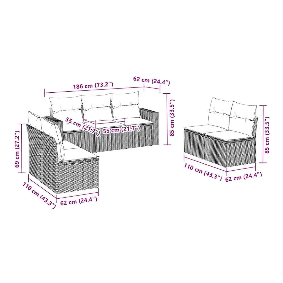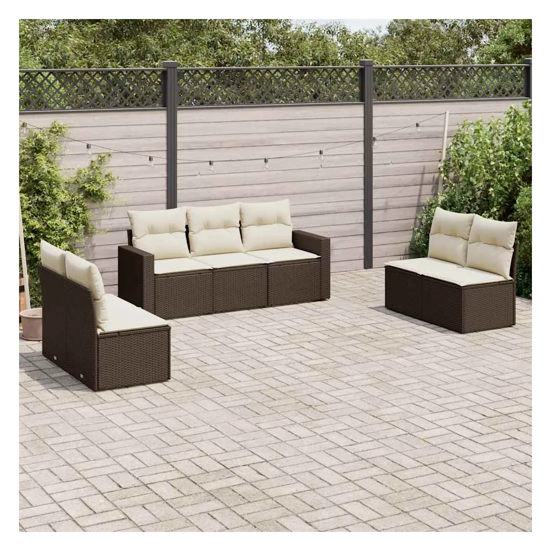 Cet ensemble de canapés de jardin est le complément parfait de votre arrière-cour, terrasse ou patio, offrant un espace confortable et accueillant pour discuter avec la famille et les amis ou simplement se détendre et profiter de l'extérieur. Matériau durable : la résine tressée, également connue sous le nom de poly rotin, est un matériau synthétique solide et nécessitant peu d'entretien qui ressemble au rotin naturel. Il est léger, facile à nettoyer et couramment utilisé pour les meubles d'extérieur en raison de sa durabilité et de ses propriétés de résistance aux intempéries.Fonction de rangement avec sac résistant à l'eau : chaque siège de jardin dispose d'un espace de rangement sous l'assise, complété par un sac résistant à l'eau pour ranger les coussins, les jouets et d'autres objets. Les sacs intérieurs sont dotés d'un couvercle et peuvent être solidement fixés aux sièges à l'aide de bandes auto-agrippantes pour plus de stabilité.Expérience d'assise confortable : ce mobilier d'extérieur, doté de coussins épais, offre une expérience d'assise confortable.Housse amovible et lavable : ces coussins de siège sont dotés de housses amovibles pour un lavage et un entretien faciles.Conception modulaire : cet ensemble de meubles d'extérieur a une conception modulaire, ce qui le rend complètement flexible et facile à déplacer, afin que vous puissiez créer un agencement de meubles d'extérieur personnalisé. Bon à savoir :Pour que vos meubles d'extérieur restent beaux, nous vous recommandons de les protéger avec une housse imperméable.