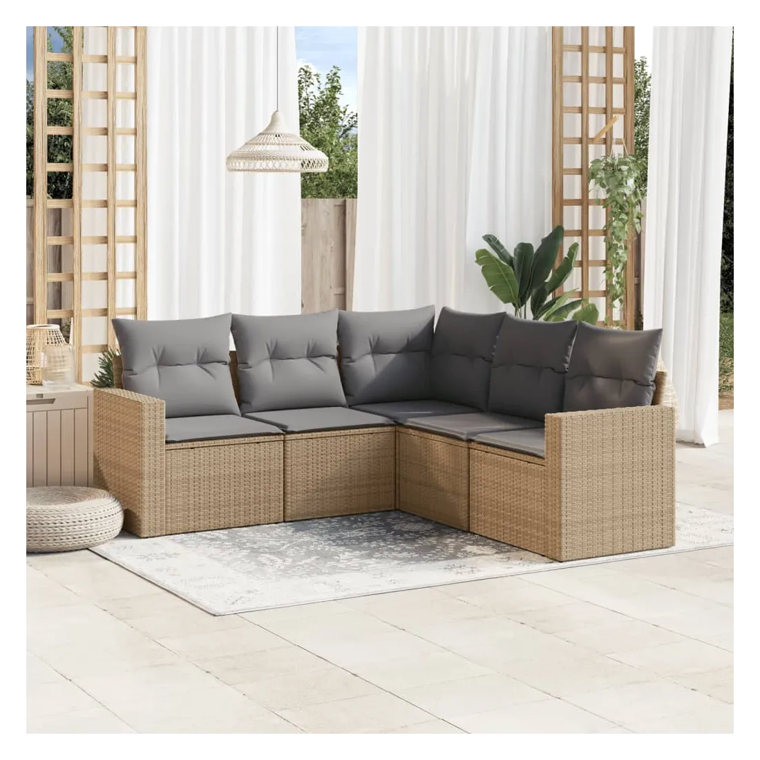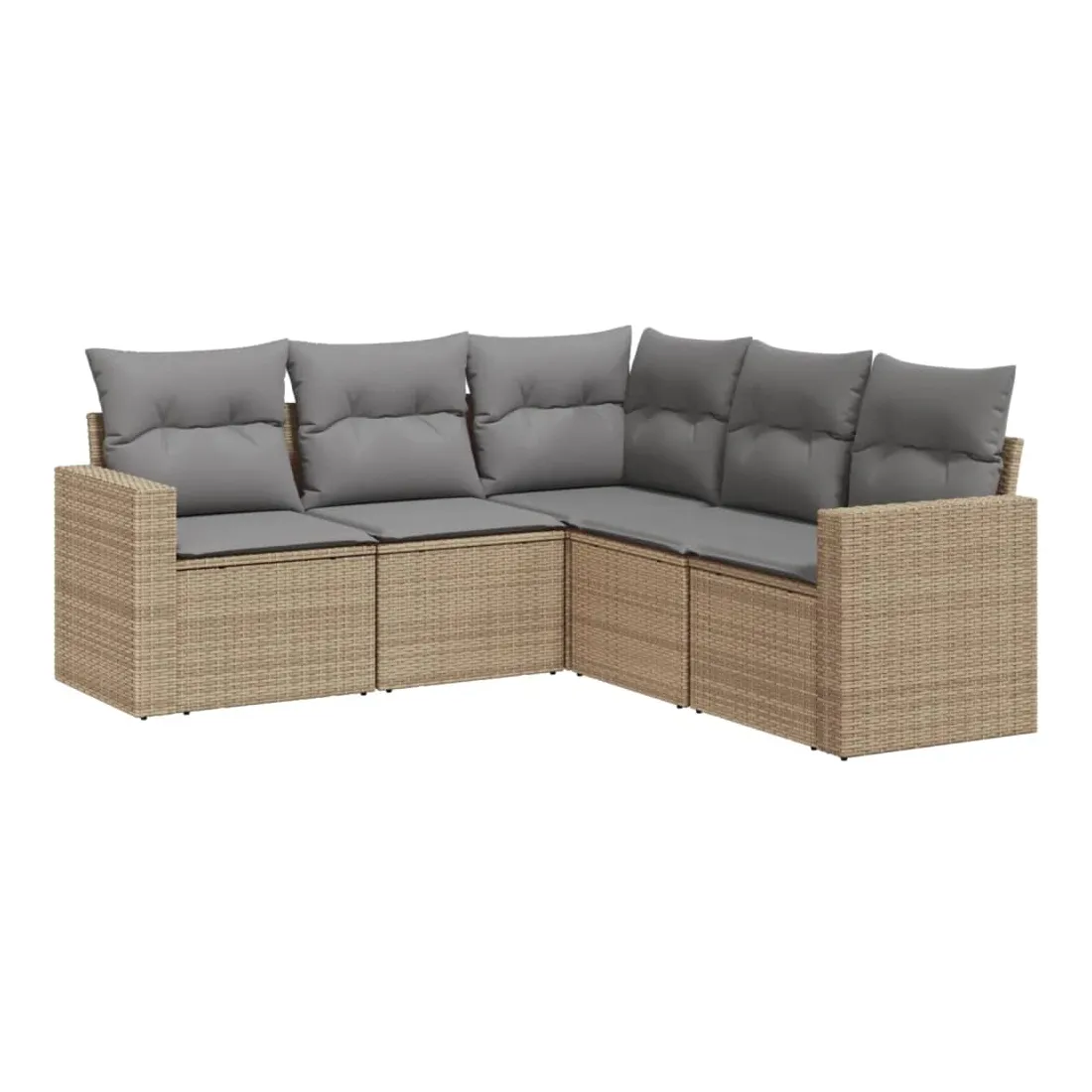 Salon de jardin avec coussins 5 pcs beige résine tressée