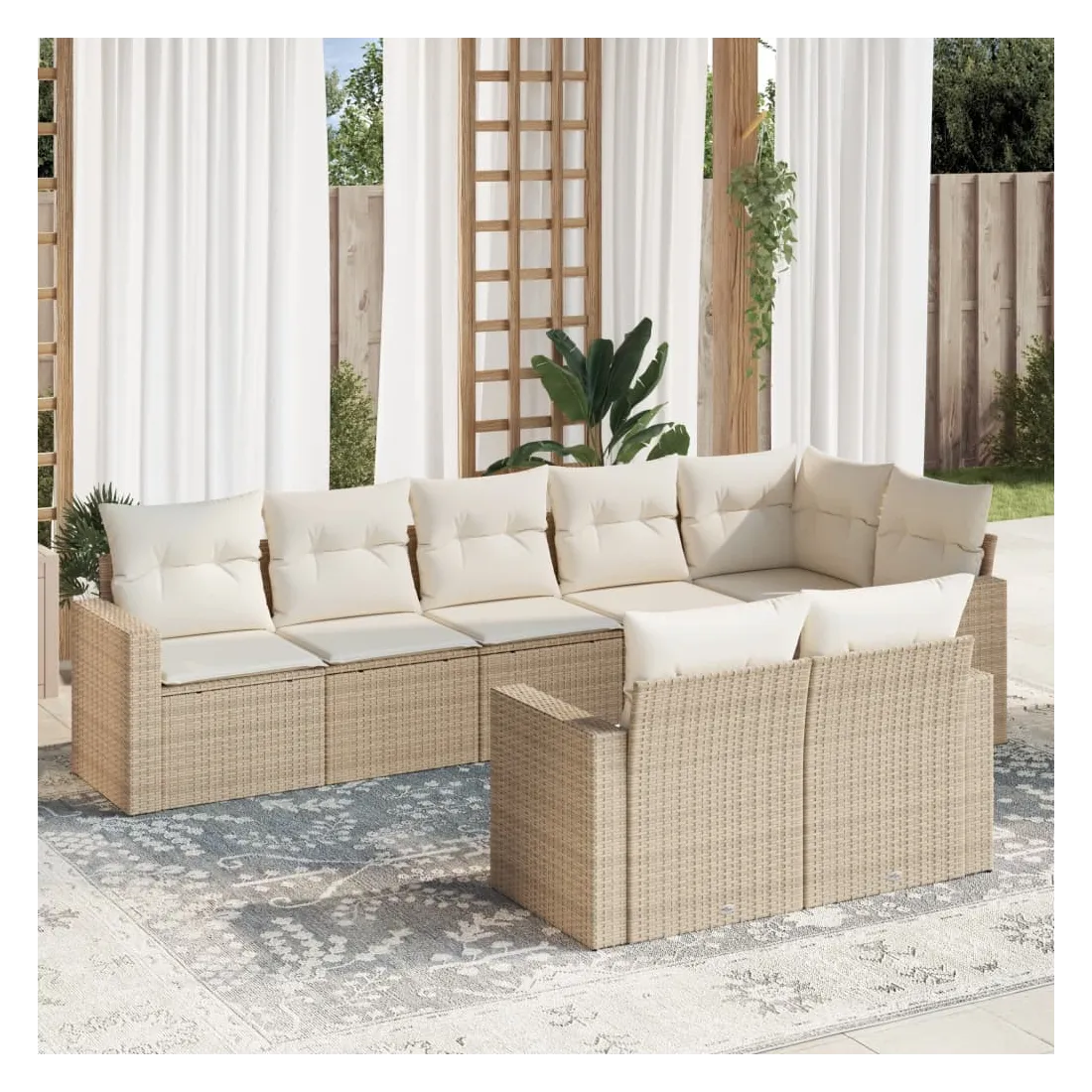 Cet ensemble de canapés de jardin est le complément parfait de votre arrière-cour, terrasse ou patio, offrant un espace confortable et accueillant pour discuter avec la famille et les amis ou simplement se détendre et profiter de l'extérieur. Matériau durable : la résine tressée, également connue sous le nom de poly rotin, est un matériau synthétique solide et nécessitant peu d'entretien qui ressemble au rotin naturel. Il est léger, facile à nettoyer et couramment utilisé pour les meubles d'extérieur en raison de sa durabilité et de ses propriétés de résistance aux intempéries.Fonction de rangement avec sac résistant à l'eau : chaque siège de jardin dispose d'un espace de rangement sous l'assise, complété par un sac résistant à l'eau pour ranger les coussins, les jouets et d'autres objets. Les sacs intérieurs sont dotés d'un couvercle et peuvent être solidement fixés aux sièges à l'aide de bandes auto-agrippantes pour plus de stabilité.Expérience d'assise confortable : ce mobilier d'extérieur, doté de coussins épais, offre une expérience d'assise confortable.Housse amovible et lavable : ces coussins de siège sont dotés de housses amovibles pour un lavage et un entretien faciles.Conception modulaire : cet ensemble de meubles d'extérieur a une conception modulaire, ce qui le rend complètement flexible et facile à déplacer, afin que vous puissiez créer un agencement de meubles d'extérieur personnalisé. Bon à savoir :Pour que vos meubles d'extérieur restent beaux, nous vous recommandons de les protéger avec une housse imperméable.