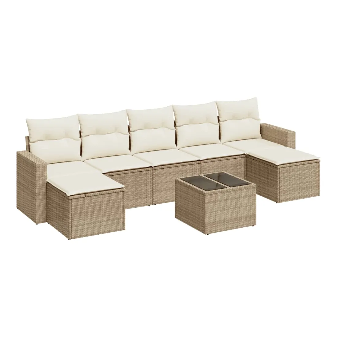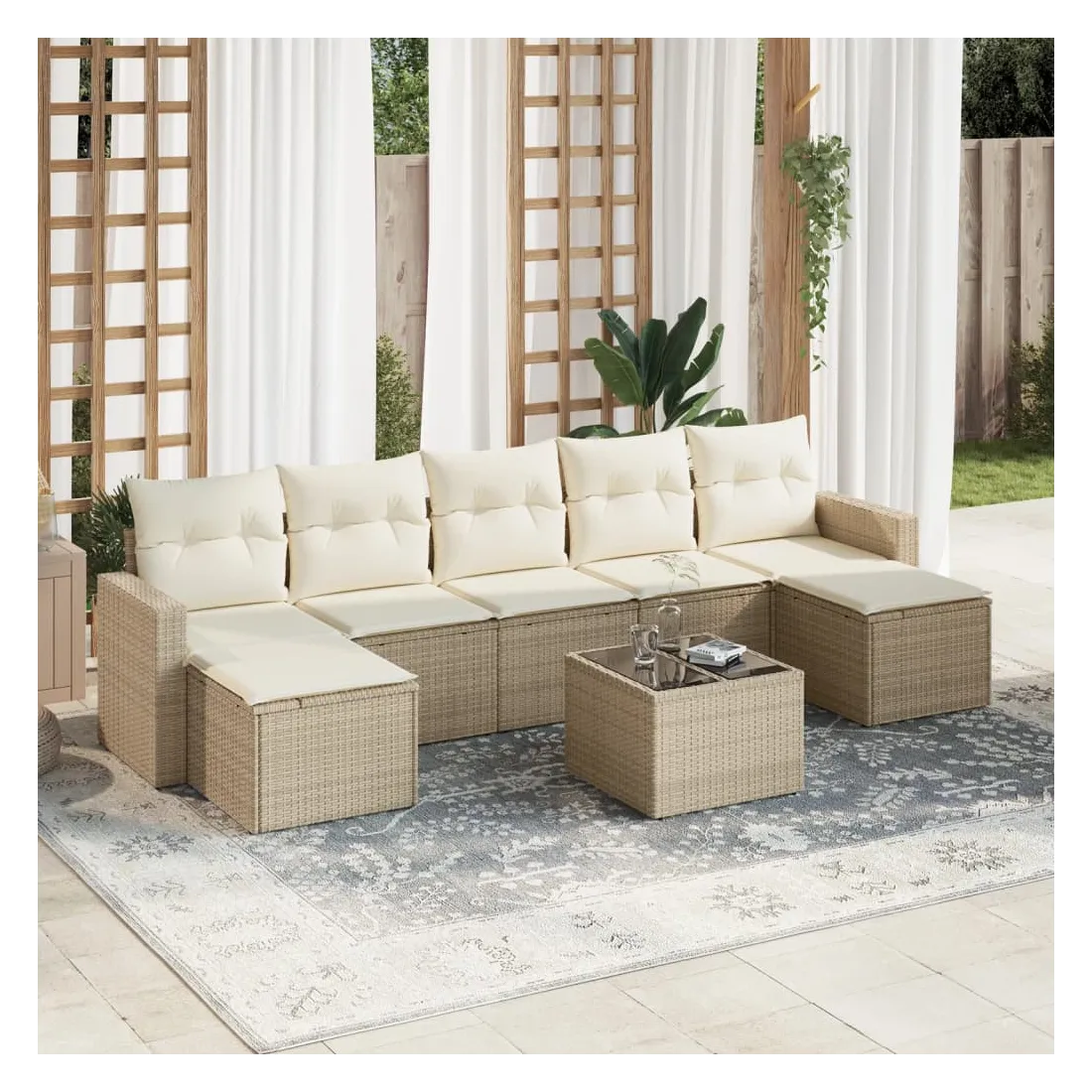 Cet ensemble de canapés de jardin est le complément parfait de votre arrière-cour, terrasse ou patio, offrant un espace confortable et accueillant pour discuter avec la famille et les amis ou simplement se détendre et profiter de l'extérieur. Matériau durable : la résine tressée, également connue sous le nom de poly rotin, est un matériau synthétique solide et nécessitant peu d'entretien qui ressemble au rotin naturel. Il est léger, facile à nettoyer et couramment utilisé pour les meubles d'extérieur en raison de sa durabilité et de ses propriétés de résistance aux intempéries.Fonction de rangement avec sac résistant à l'eau : chaque siège de jardin dispose d'un espace de rangement sous l'assise, complété par un sac résistant à l'eau pour ranger les coussins, les jouets et d'autres objets. Les sacs intérieurs sont dotés d'un couvercle et peuvent être solidement fixés aux sièges à l'aide de bandes auto-agrippantes pour plus de stabilité.Dessus en verre : le dessus de la table d'extérieur est fabriqué en verre trempé solide et durable, ce qui le rend facile à nettoyer avec un chiffon humide et ajoute une touche d'élégance à votre espace extérieur.Housse amovible et lavable : ces coussins de siège sont dotés de housses amovibles pour un lavage et un entretien faciles.Conception modulaire : cet ensemble de meubles d'extérieur a une conception modulaire, ce qui le rend complètement flexible et facile à déplacer, afin que vous puissiez créer un agencement de meubles d'extérieur personnalisé. Bon à savoir :Pour que vos meubles d'extérieur restent beaux, nous vous recommandons de les protéger avec une housse imperméable.