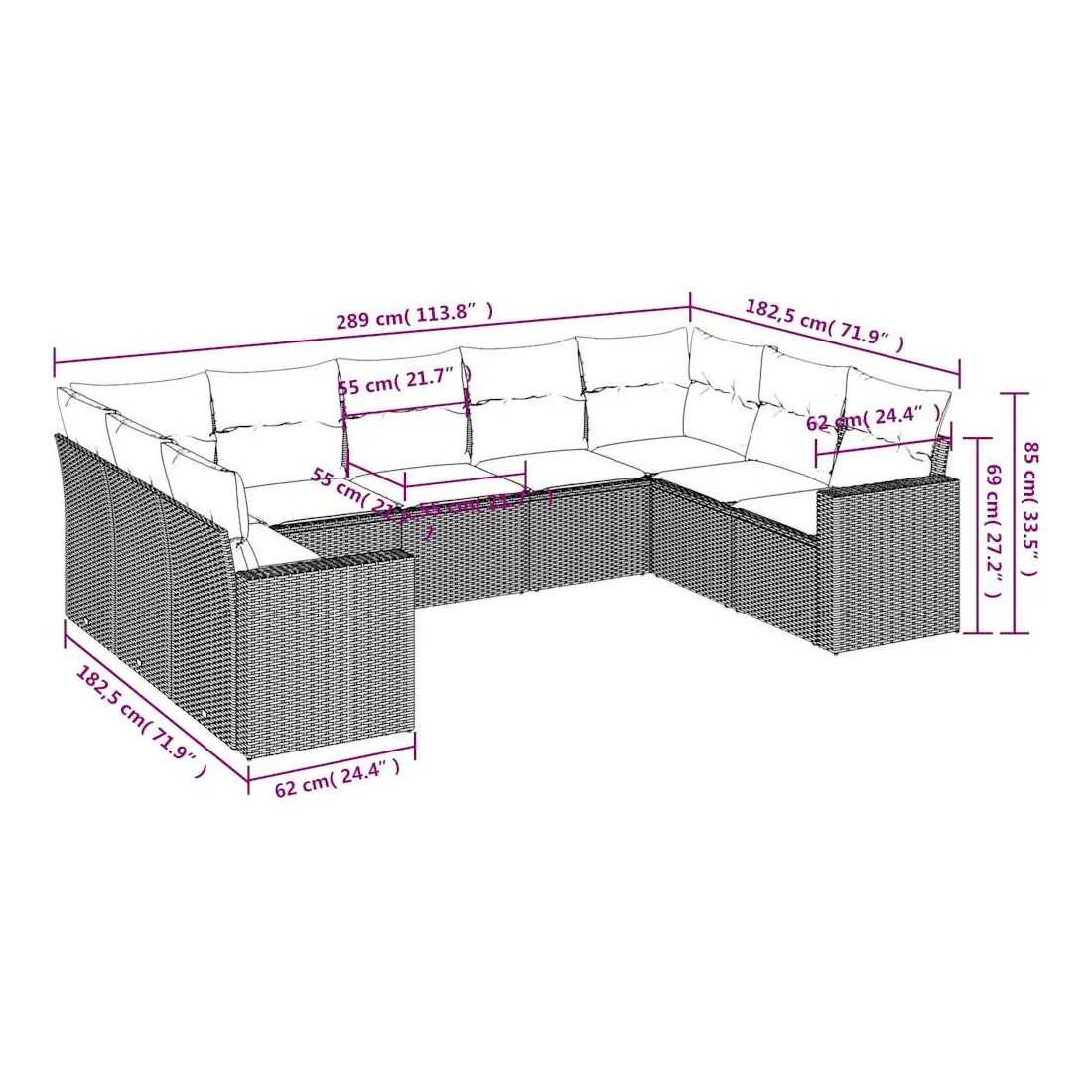 • 9 x coussin d'assise avec housse amovible et lavable