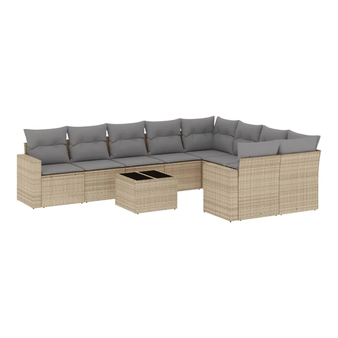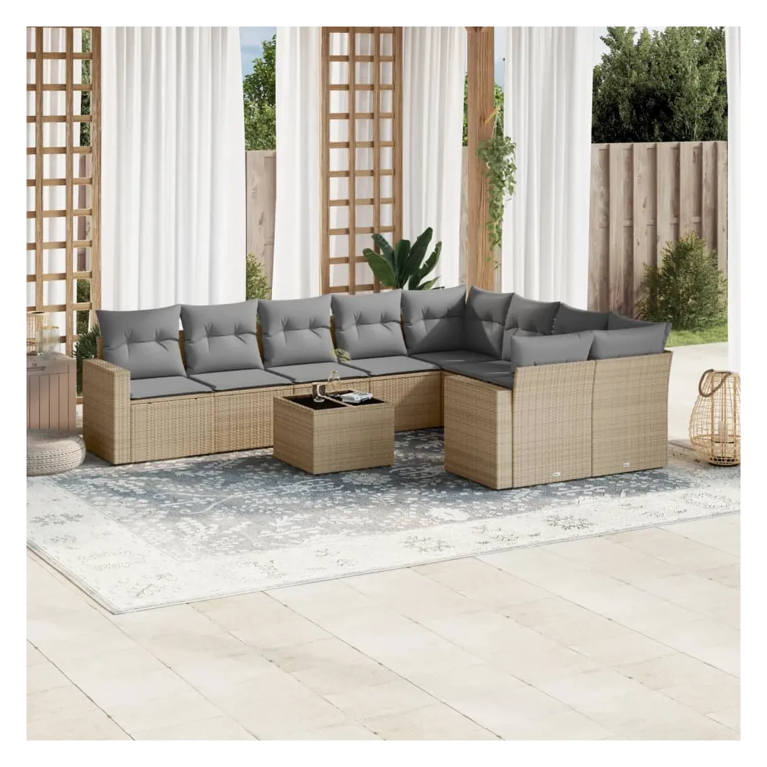 Salon de jardin avec coussins 10 pcs beige résine tressée