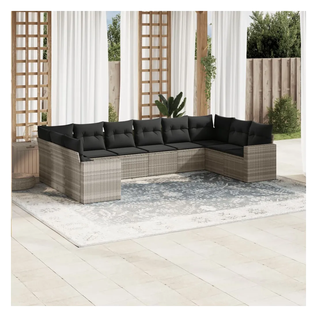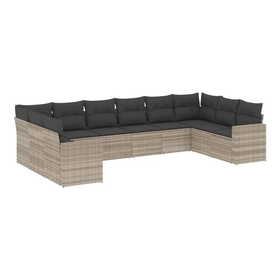 Salon de jardin avec coussins 10 pcs gris clair résine tressée