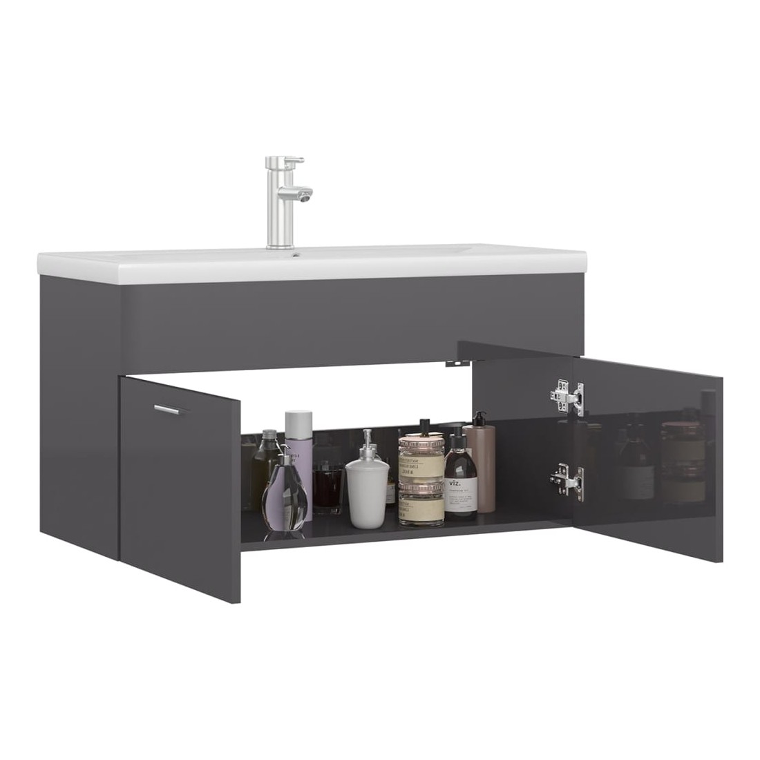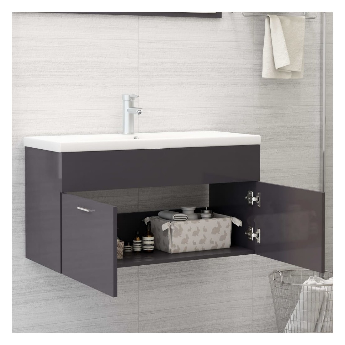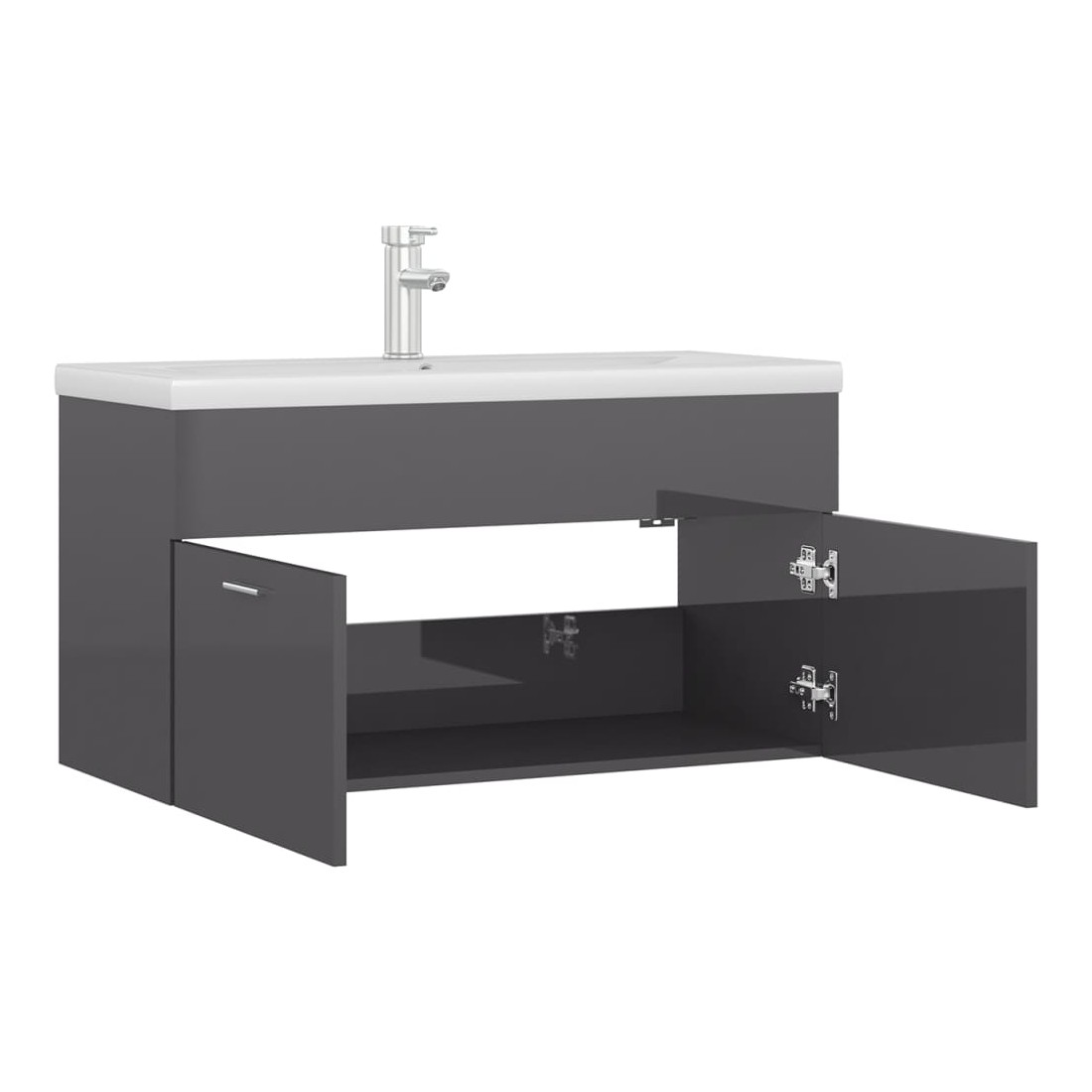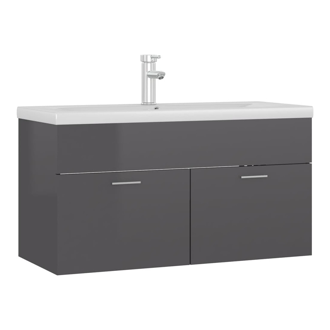 Armoire d'évier avec lavabo intégré Gris brillant Aggloméré