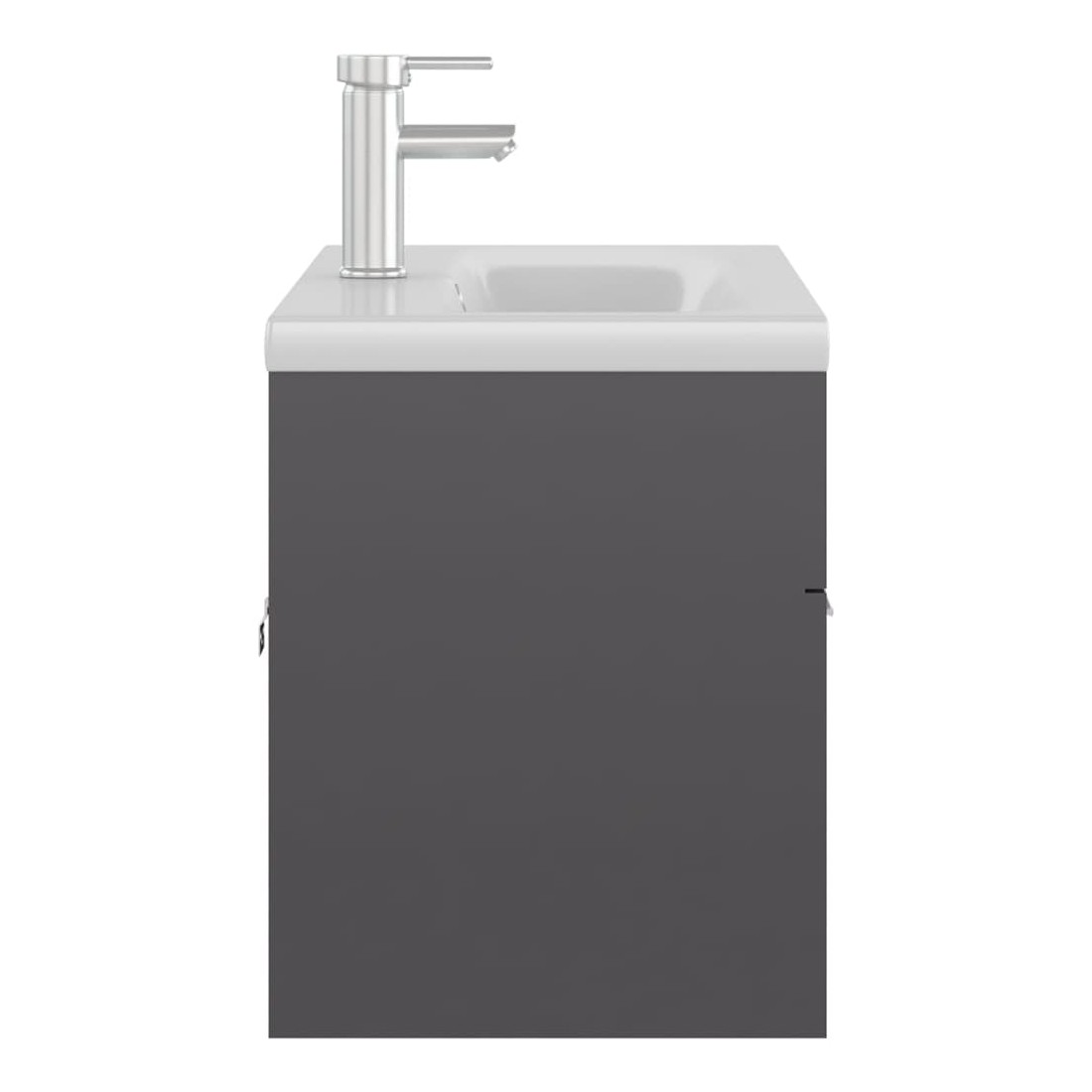 Cette armoire d'évier avec lavabo intégré s'agence parfaitement à votre salle de bain ou toilette avec un aspect saisissant et bien rangé. L'armoire est en aggloméré, ce qui la rend robuste et stable. L'armoire de rangement a 1 compartiment et 2 portes, offrant amplement d'espace pour ranger des objets. Elle s'intègre parfaitement sous l'évier et rend le rangement de la salle de bain très pratique. Fabriqué en céramique, le lavabo peut non seulement servir de récipient pour un usage quotidien, mais également d'ornement dans votre espace de vie. Grâce à son design avant-gardiste et contemporain, ce lavabo s'adaptera à n'importe quel décor. Un trop-plein est également équipé pour vidanger l'eau lorsqu'il est trop plein. Sa surface vitrée lui confère un design à la fois moderne et élégant. De plus, l'armoire et le lavabo sont faciles à nettoyer avec un chiffon humide. Remarque : le robinet et l'égouttoir à poussoir avec fonction de trop-plein sont inclus dans la livraison.