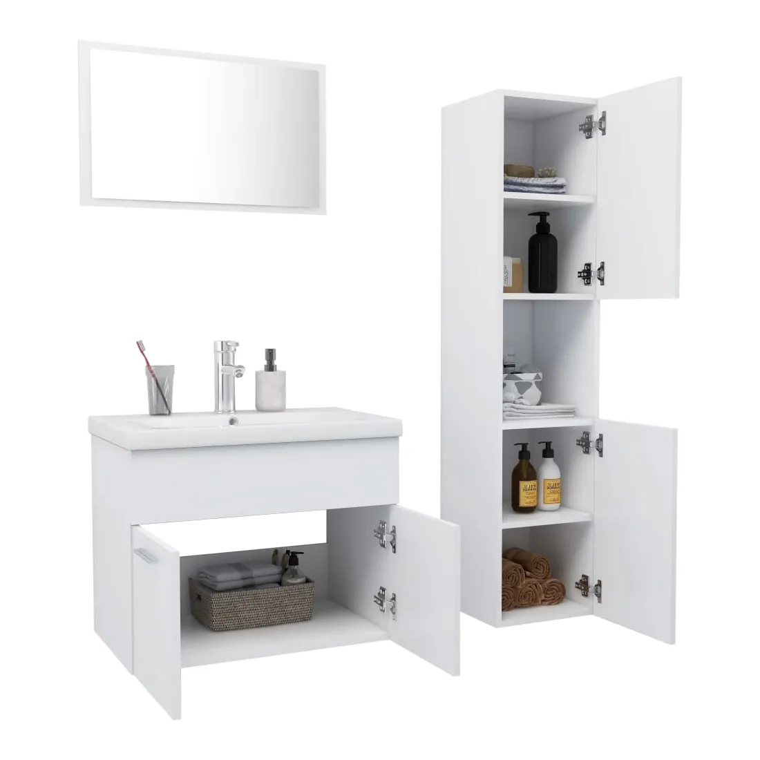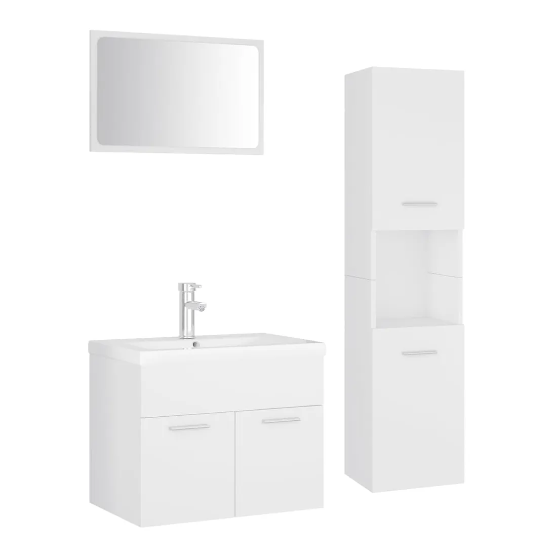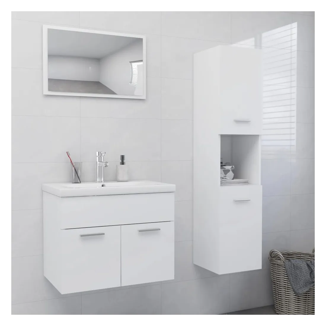 Avec cet élégant ensemble de meubles de salle de bain, vous pouvez créer un espace de rangement supplémentaire pour votre salle de bain avec un aspect remarquable et bien rangé. Les lignes épurées et le design élégant s'intègrent parfaitement à votre salle de bain. L’ensemble de meubles se compose d’une armoire de lavabo, d’une armoire haute, d’un lavabo encastré et d’un miroir. L’armoire de lavabo chic a 1 compartiment et le dessus de celle-ci est idéal pour placer l’évier. L’armoire haute dispose d’un total de 5 compartiments et de 2 portes, offrant ainsi un espace suffisant pour ranger les objets de votre salle de bain. Fabriqué en céramique, ce lavabo peut non seulement servir de récipient pour une utilisation quotidienne, mais aussi comme ornement dans votre espace de vie. Grâce à son design tendance et contemporain, ce lavabo conviendra à tout décor. Un trop-plein est équipé pour vidanger l’eau quand il est trop plein. Le miroir ajoute également une excellente apparence à votre décoration intérieure. De plus, cet ensemble de salle de bain est facile à nettoyer avec un chiffon humide. Remarque : le robinet et l'égouttoir à poussoir avec fonction de trop-plein sont inclus dans la livraison.