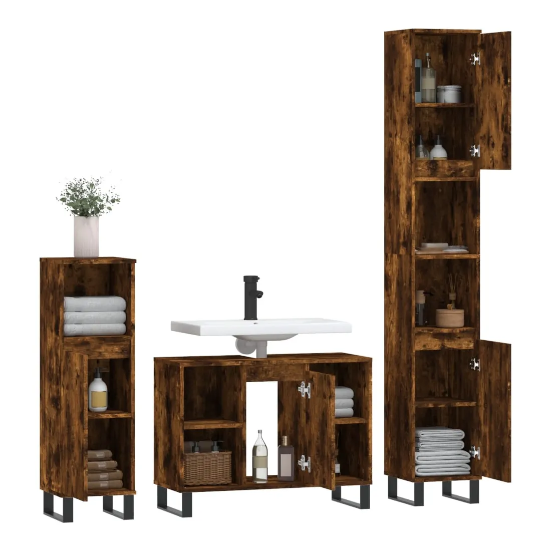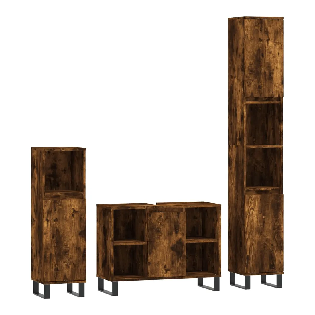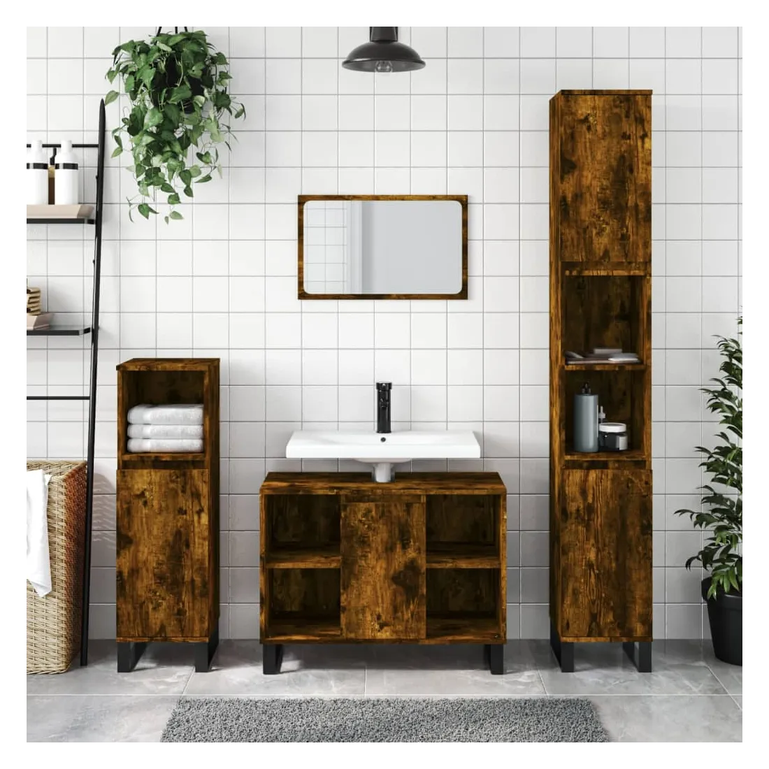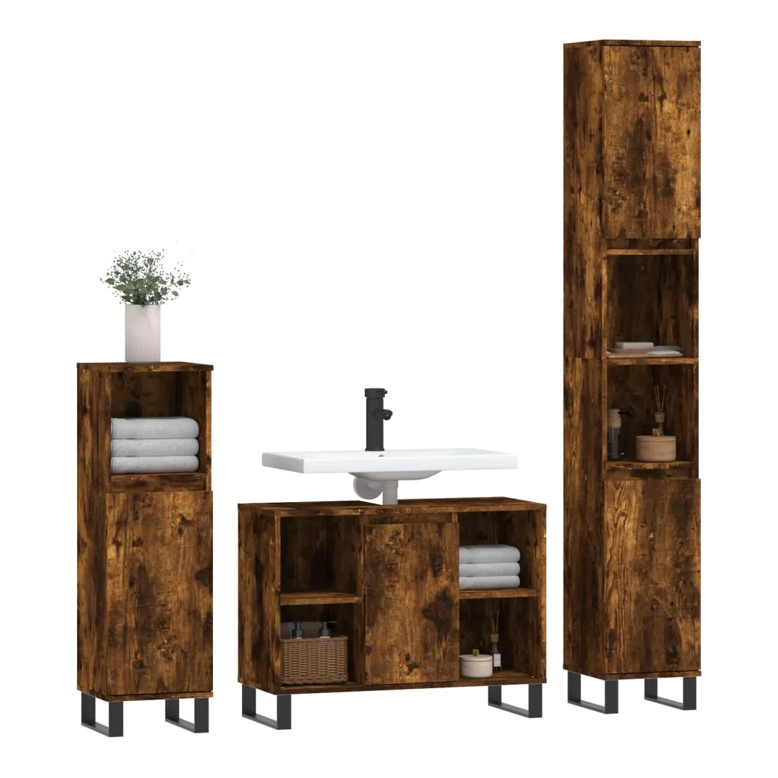 vidaXLCet ensemble de meubles de salle de bain tendance est un excellent supplément à votre salle de bain, ce qui lui donne une apparence ordonnée et saisissante ! Matériau durable : le bois d'ingénierie est d'une qualité exceptionnelle avec une surface lisse et présente également résistance, stabilité et résistance à l'humidité. Pieds en fer : les pieds en fer ajoutent un style moderne et calme à votre intérieur tout en assurant la stabilité.Grand espace de rangement : l'armoire de salle de bain offre diverses options de rangement et un espace spacieux pour ranger des articles dans votre salle de bain. Design pratique : le dessus du meuble-lavabo de salle de bain est idéal pour placer le lavabo. Attention :Pour éviter qu'il ne soit renversé, ce produit doit être utilisé avec le dispositif de fixation au mur fourni. Bon à savoir :Le lavabo n'est pas inclus dans la livraison.Les vis et les chevilles pour l'intérieur du mur ne sont pas incluses. Nous vous conseillons de trouver et d'utiliser des vis et des chevilles adaptées spécifiquement à vos murs. Si vous n'êtes pas sûr, vous pouvez consulter un professionnel. Veuillez lire et suivre chaque étape des instructions.