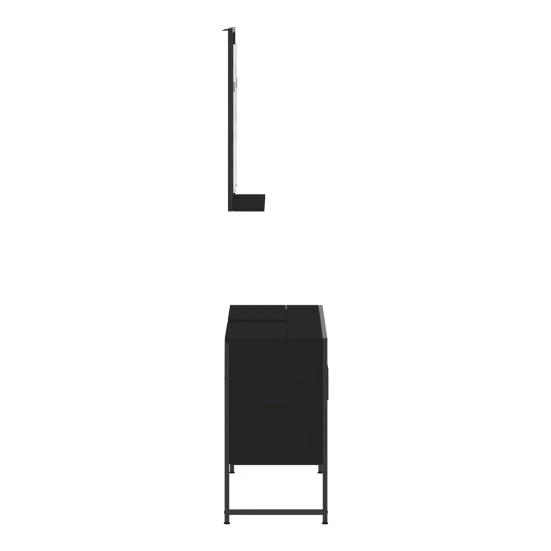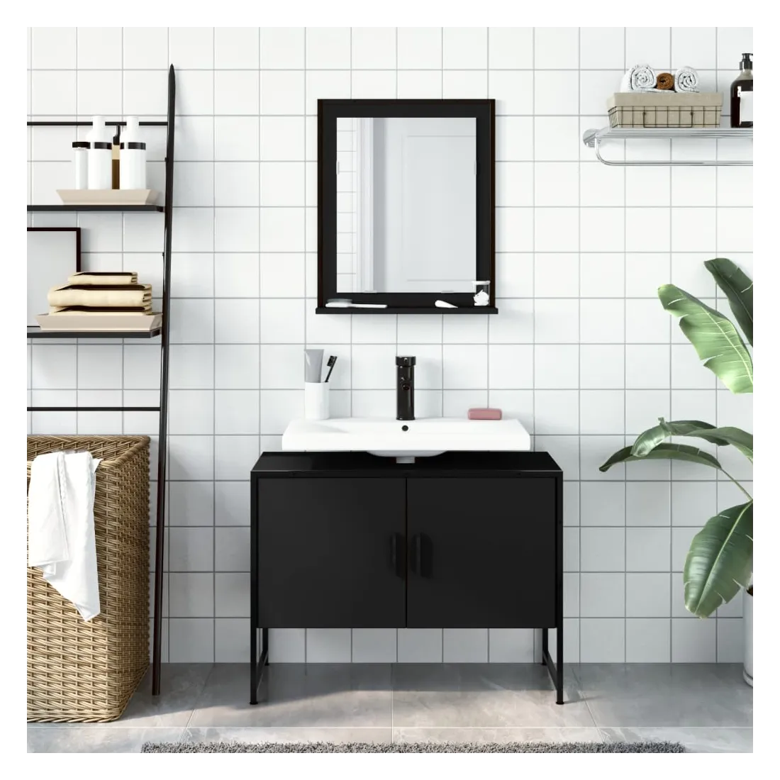 Cet ensemble d'armoires de salle de bain attrayant, avec un grand espace de rangement, présente un design élégant mais pratique. Construction robuste : l'acier revêtu de poudre et le bois d'ingénierie garantissent une construction robuste et offrent un support solide à vos articles.Grand espace de rangement : ce meuble de salle de bain offre un grand espace de rangement pour accueillir facilement vos articles de toilette et articles de bain essentiels tels que savons, shampoing, dentifrice, etc.Étagère de rangement supplémentaire : le miroir de bain est doté d'une étagère inférieure qui offre un espace de rangement supplémentaire pour les accessoires de salle de bains tels que les brosses à dents, les nettoyants pour le visage, les rasoirs, etc. Bon à savoir :Les vis et les chevilles pour l'intérieur du mur ne sont pas incluses. Nous vous conseillons de trouver et d'utiliser des vis et des chevilles adaptées spécifiquement à vos murs. Si vous n'êtes pas sûr, vous pouvez consulter un professionnel. Veuillez lire et suivre chaque étape des instructions. Attention :Pour éviter qu'il ne bascule, ce produit doit être utilisé avec le dispositif de fixation murale fourni.