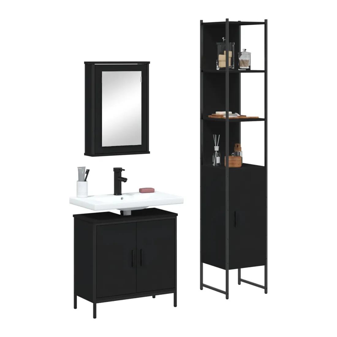 Cet ensemble de meubles de salle de bain pratique, avec un espace de rangement spacieux, est un excellent supplément à votre salle de bain, ce qui lui donne une apparence ordonnée et saisissante ! Matériau durable : le bois d'ingénierie est d'une qualité exceptionnelle avec une surface lisse et présente également résistance, stabilité et résistance à l'humidité. Grand espace de rangement : les meubles de salle de bain offrent diverses options de rangement et un espace spacieux pour ranger des objets dans votre salle de bain. Design peu encombrant : l'armoire à miroir de salle de bain peut être facilement fixée au mur pour économiser de l'espace au sol. Le haut de l'armoire de toilette est idéal pour placer l'évier, ce qui permet d'utiliser pleinement l'espace libre sous l'évier. Image claire : la face en verre du miroir offre une réflexion fine et non déformée. Il convient donc pour se maquiller, se raser ou vérifier son costume avant de sortir. Attention :Pour éviter qu'il ne bascule, ce produit doit être utilisé avec le dispositif de fixation murale fourni. Bon à savoir :Les vis et les chevilles pour l'intérieur du mur ne sont pas incluses. Nous vous conseillons de trouver et d'utiliser des vis et des chevilles adaptées spécifiquement à vos murs. Si vous n'êtes pas sûr, vous pouvez consulter un professionnel. Veuillez lire et suivre chaque étape des instructions.