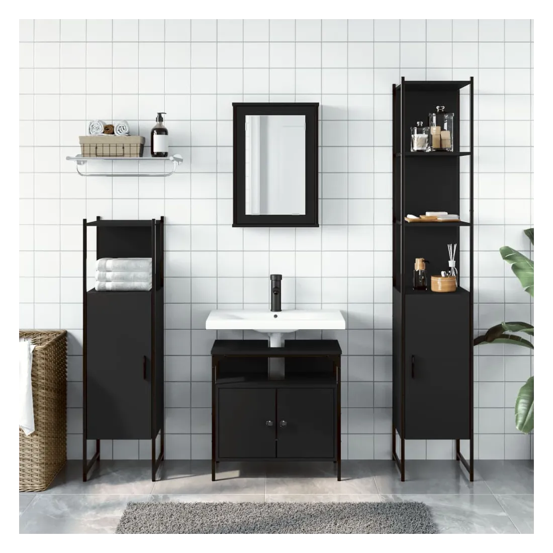 Cet ensemble de meubles de salle de bain pratique, avec un espace de rangement spacieux, est un excellent supplément à votre salle de bain, ce qui lui donne une apparence ordonnée et saisissante ! Matériau durable : le bois d'ingénierie est d'une qualité exceptionnelle avec une surface lisse et présente également résistance, stabilité et résistance à l'humidité.Grand espace de rangement : les meubles de salle de bain offrent diverses options de rangement et un espace spacieux pour ranger des objets dans votre salle de bain.Fonction murale : l'armoire de toilette peut être fixée au mur pour économiser de l'espace au sol, ce qui la rend particulièrement adaptée aux pièces avec un espace limité.Design peu encombrant : la partie supérieure de l'armoire de salle de bains est idéale pour placer le lavabo, ce qui permet d'utiliser pleinement l'espace vacant sous le lavabo.Image claire : la face en verre du miroir offre une réflexion fine et non déformée. Il convient donc pour se maquiller, se raser ou vérifier son costume avant de sortir. Attention :Pour éviter qu'il ne bascule, ce produit doit être utilisé avec le dispositif de fixation murale fourni. Bon à savoir :Les vis et les chevilles pour l'intérieur du mur ne sont pas incluses. Nous vous conseillons de trouver et d'utiliser des vis et des chevilles adaptées spécifiquement à vos murs. Si vous n'êtes pas sûr, vous pouvez consulter un professionnel. Veuillez lire et suivre chaque étape des instructions.