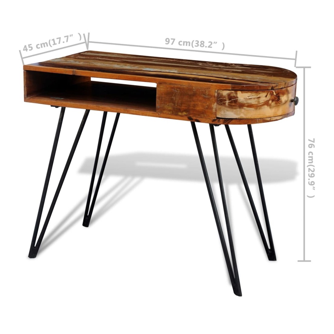 - Matériau du dessus de table : bois massif de récupération