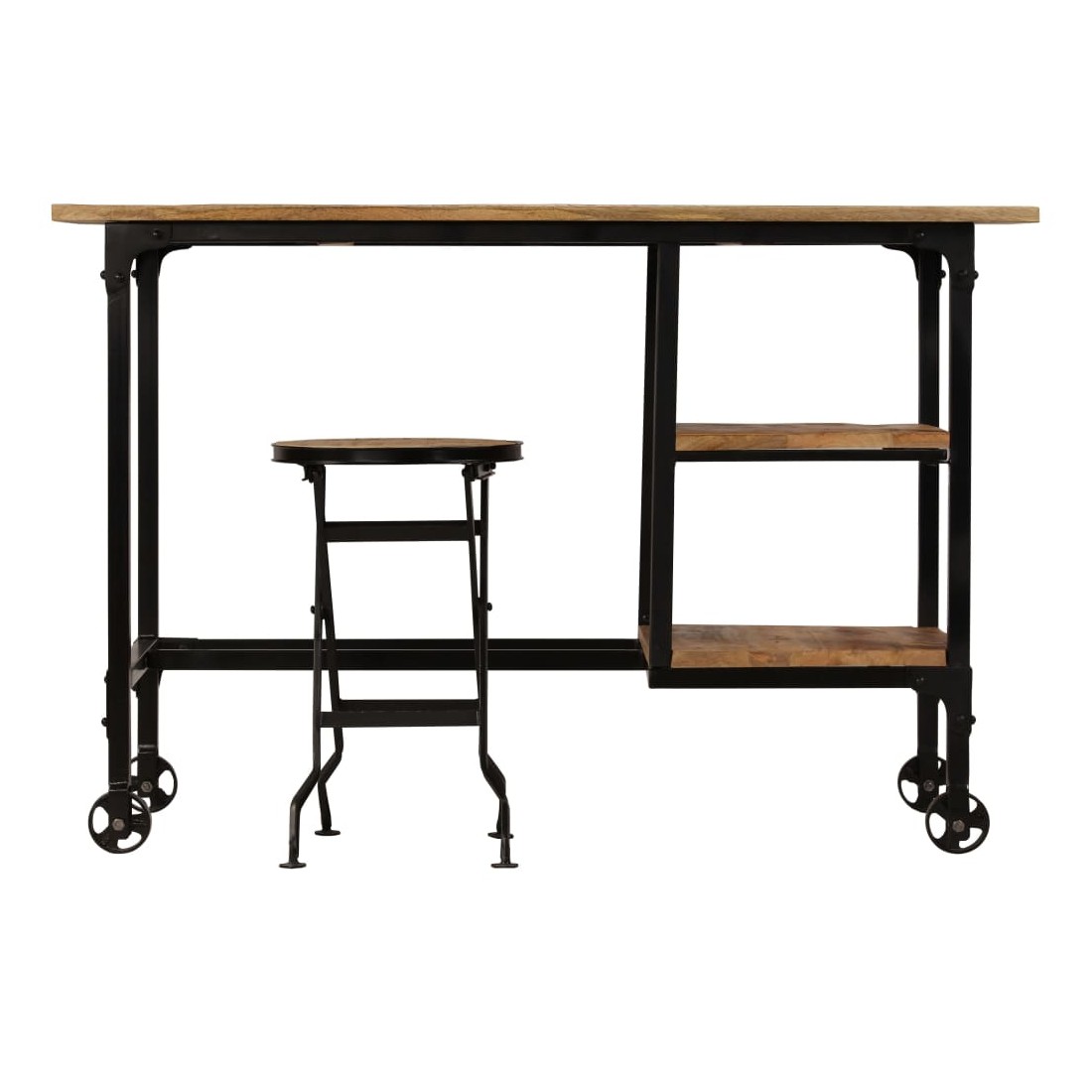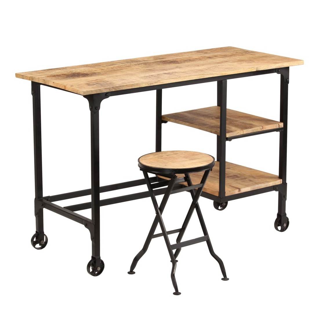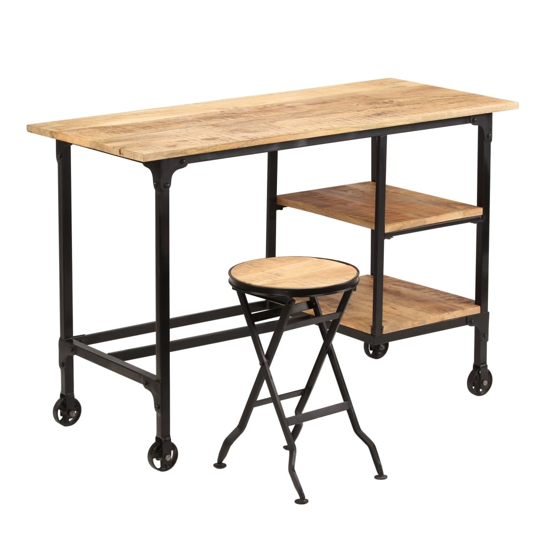 Bureau avec tabouret pliant Bois de manguier massif 115x50x76cm