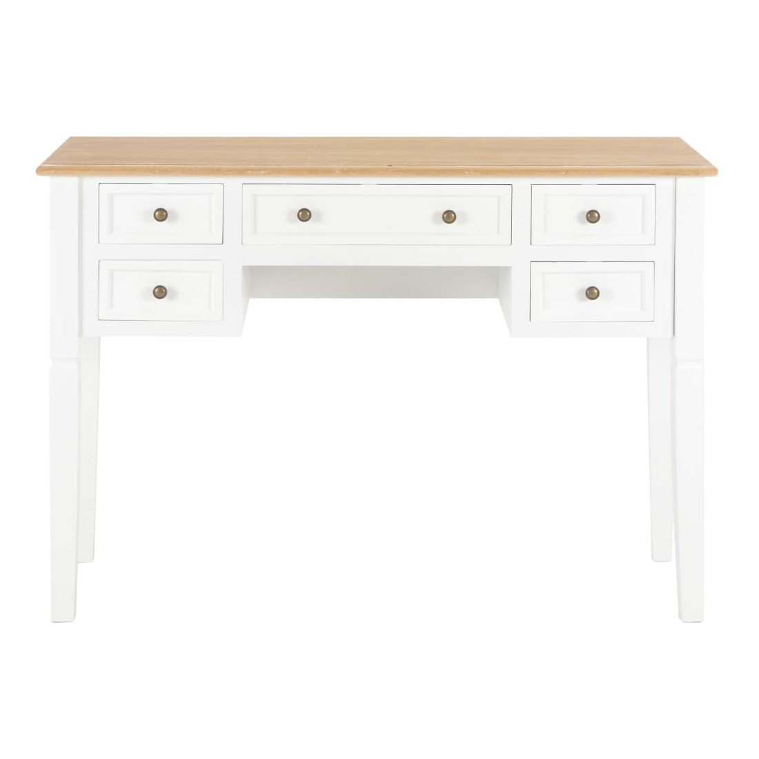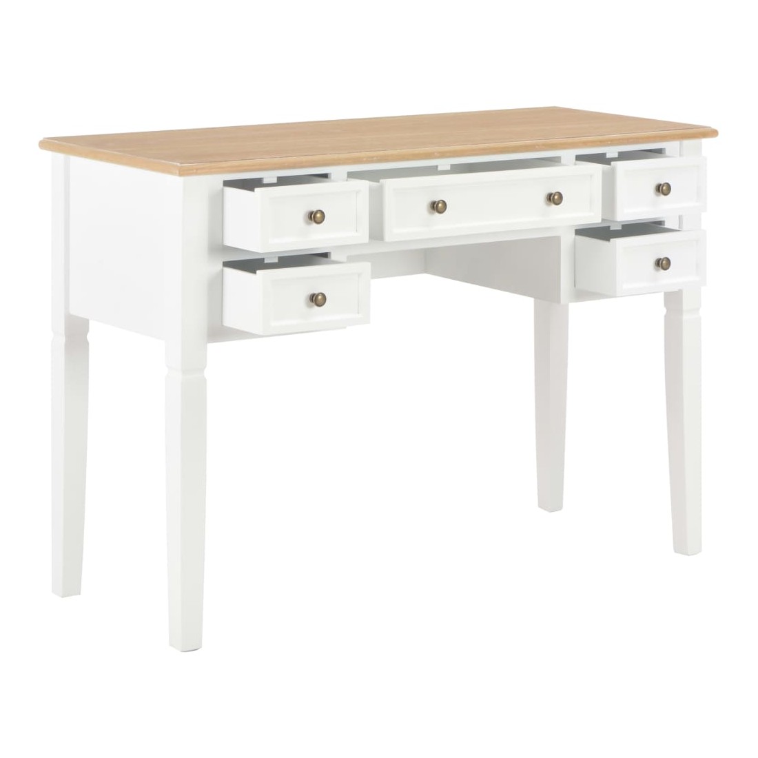 Ce bureau doté d'un design simple mais intemporel, ajoutera une touche romantique à votre bureau ou chambre. Ce bureau durable comporte cinq grands tiroirs à papeterie offrant assez d'espace pour stocker et organiser vos fichiers, papiers, documents et autres fournitures de bureau. Le bureau offre également suffisamment d'espace pour vos ornements ou autres effets personnels. Ce solide bureau peint en blanc est construit en MDF et en bois de pin de haute qualité.