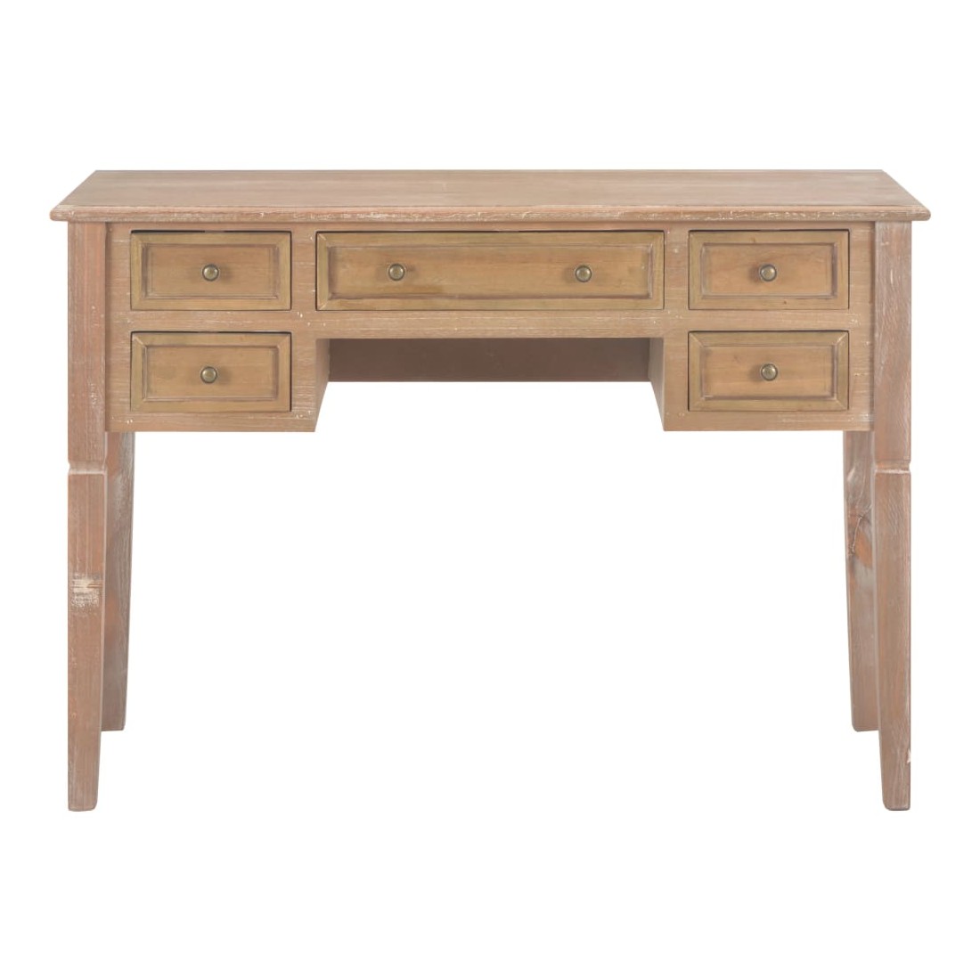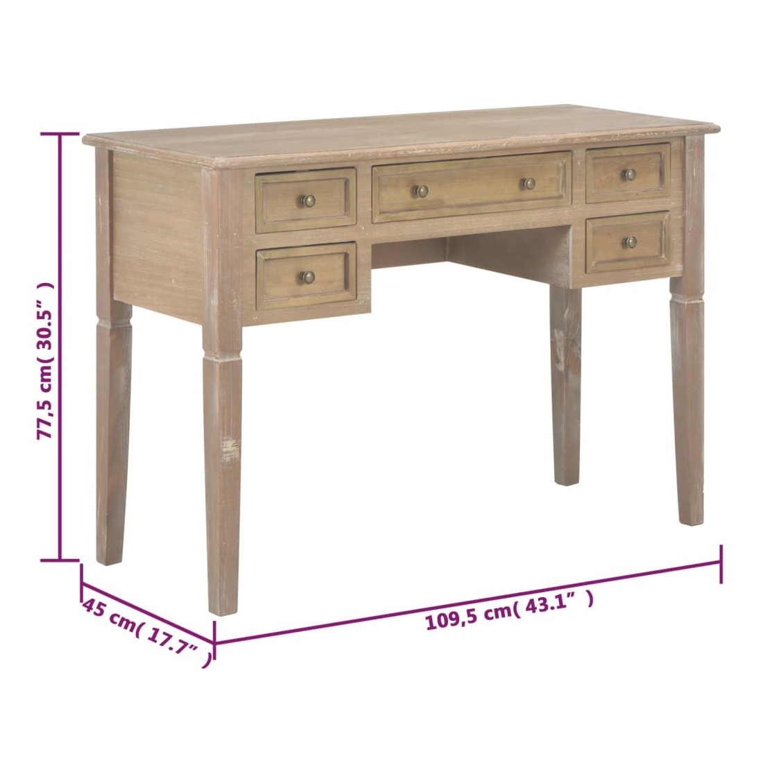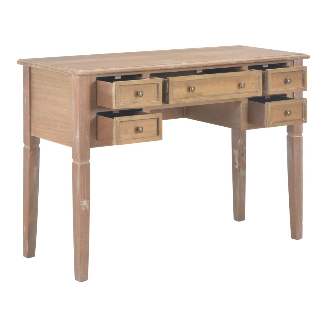 Ce bureau doté d'un design simple mais intemporel, ajoutera une touche romantique à votre bureau ou chambre. Ce bureau durable comporte cinq grands tiroirs à papeterie offrant assez d'espace pour stocker et organiser vos fichiers, papiers, documents et autres fournitures de bureau. Le bureau offre également suffisamment d'espace pour vos ornements ou autres effets personnels. Ce bureau robuste est fabriqué en MDF et en bois de pin de haute qualité et est peint en marron.